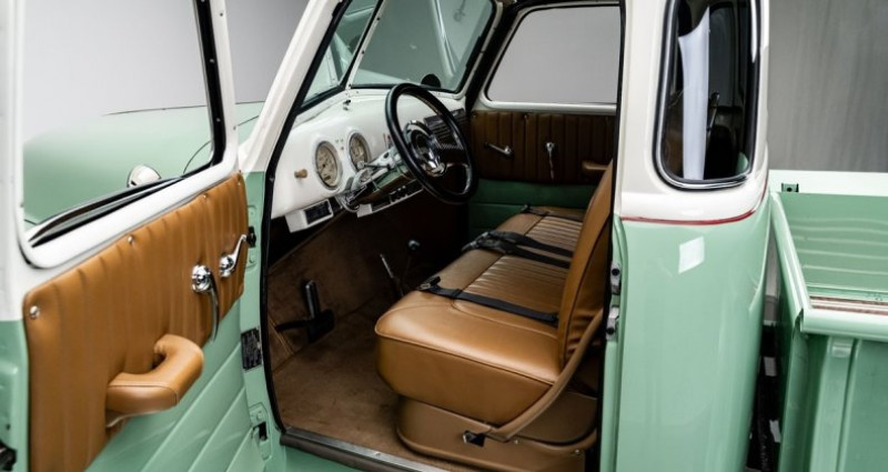 - Marque : Chevrolet - Modèle : 3100 Pickup - Année : 1951 - Série : Advance Design - Carrosserie : 5-Window - Couleur extérieure : Mint Green - Moteur : 6.0L V8 - Boîte de vitesses : 4 Speed Automatic - Transmission : RWD - Kilométrage : 142 miles - Suspension : Coil-spring avant, feuilles arrière - Intérieur : Tan - Climatisation : Vintage Air - Stereo : Dual 6.2-inch touchscreen avec Bluetooth, voice assist et connectivité smartphone - Restauration : Professionnellement restauré par Tony's Muscle Cars de Hazleton, Pennsylvanie - Année de restauration : 2024 - Châssis : S10 amélioré - Axes : 10-bolt arrière - Options : Air conditioning, Dual exhaust, Power steering, Four-wheel power disc brakes, Aluminum bed floor fini pour ressembler au bois. Provenance : North Carolina. Disponibilité : environ 7 semaines, clés en main. 122 500 € tout compris (importation, taxes, procédure d'immatriculation). Annonce publiée le 19/12/2025