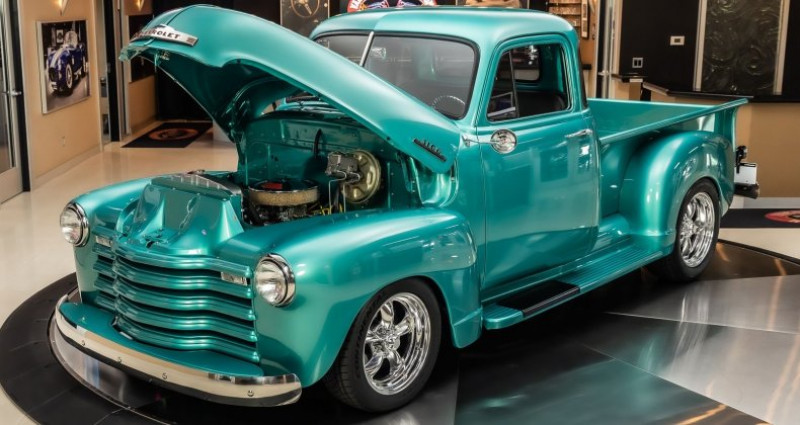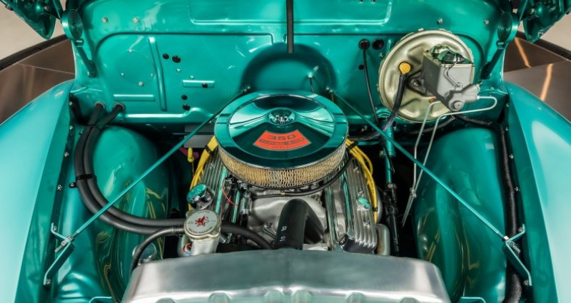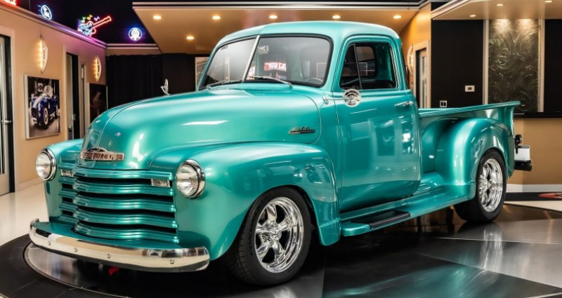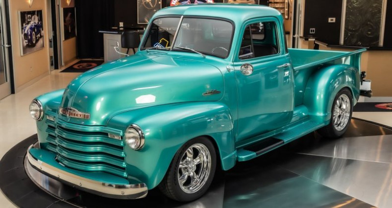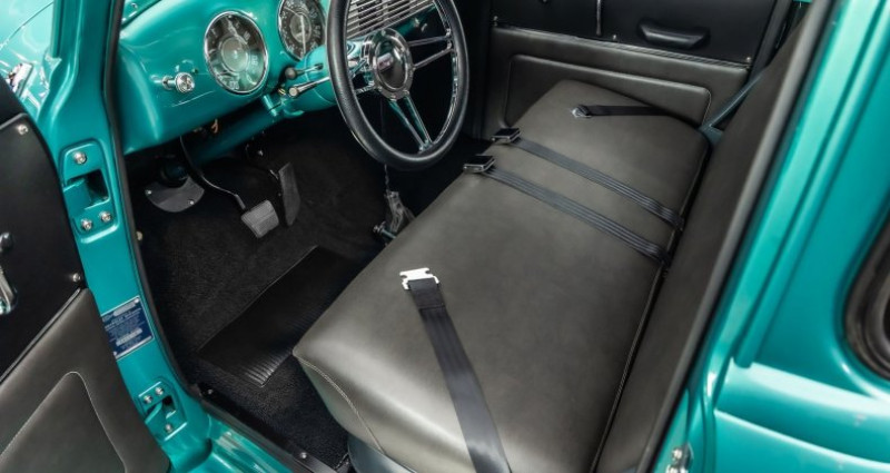 - Marque : Chevrolet - Modèle : 3100 5-Window Pickup Restomod - Année : 1953 - Couleur extérieure : Turquoise métallisé - Couleur intérieure : Gris - Kilométrage : 309 miles - Moteur : Chevrolet 350ci V8 Small Block - Boîte de vitesses : Transmission TH400, 3 vitesses automatique - Transmission arrière : Style Factory, 3.00:1 rapport de transmission - Équipements : Freinage assisté, freins à disque avant, direction assistée, roues American Racing, pneus 215/55/17 (avant) et 245/55/18 (arrière), tableau de bord personnalisé, système audio intérieur, sièges bancs en cuir gris, panneaux de portes neufs, tapis de sol noir, capot moteur noir peint, barre anti-roulis avant, réservoir de carburant personnalisé, système d'échappement double, etc.. Provenance : Michigan. Disponibilité : environ 7 semaines, clés en main. 135 500 € tout compris (importation, taxes, procédure d'immatriculation). Annonce publiée le 29/12/2025