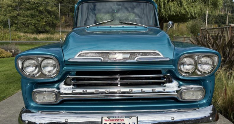 Ce véhicule est un Chevrolet Apache de 1959 équipé d'une camionnette longue de 3200, restauré il y a 14 ans. Il présente une beauté cosmétique et son état mécanique est original. Sa motorisation est assurée par un six cylindres rectiligne de 235 chevaux associé à une boîte de vitesses à quatre rapports manuelle. Le plancher en bois a été remplacé il y a quatre ans. L'intérieur du véhicule est en parfait état.. Provenance : Washington, USA. Disponibilité : 7 semaines, clés en main. 30 500 € tout compris (import, taxes, procédure d'immatriculation). Annonce publiée le 01/10/2025