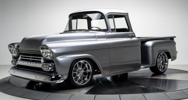 - Marque : Chevrolet - Modèle : Apache - Année : 1958 - Type de carrosserie : Pick-up - Couleur extérieure : Palladium Silver Metallic - Moteur : 454ci V8 - Boîte de vitesses : Automatique 3 vitesses - Transmission : 10-bolt arrière avec 3.42 gears - Équipements : Air conditionné, freinage assisté, direction assistée, freins à disques avant, roues US Mags Rambler 18/20 pouces, pneus BF Goodrich g-Force, tableau de bord classique, volant bois, banquette cuir noir, boîte de vitesses Lokar - Kilométrage : 114 miles (non converti en kilomètres). Provenance : North Carolina. Disponibilité : environ 7 semaines, clés en main. 108 500 € tout compris (importation, taxes, procédure d'immatriculation). Annonce publiée le 19/12/2025