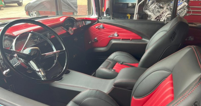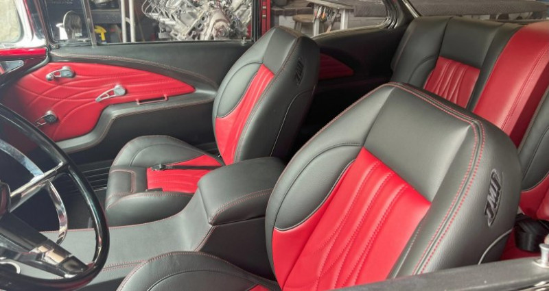 Cet automobile, un Belair de 1956, est un coupe à deux portes restauré et modifié de manière significative. Il est équipé d'un moteur LS de 6, 25 HP, associé à une transmission automatique 6L80. La châssis a été renforcée grâce à l'utilisation d'un cadre en acier intermédiaire powder coated de fabrication Intertech Manufacturing, avec un système de suspension avant indépendante de Mustang II à amortisseurs à ressorts et une suspension arrière à 4 barres de torsion avec amortisseurs à ressorts. Le pont arrière provient du constructeur Ford. L'échappement est en acier inoxydable. La peinture, deux-tones et récompensée, présente une nuance custom blend noir cerise sur le toit et une nuance House of colors Randy Apple Red sur le bas. L'intérieur a été remanié par TMI Custom, avec une lame de plafond colorée et un tableau de bord central. La baie moteur et l'intake manifold ont été colorés et polis pour donner un aspect harmonieux sur le moteur LS, qui a été équipé d'un radiateur Be Cool et d'ingénierie d'aile Eddy Motor Sports. Le Belair est équipé de freins à disques sur les quatre roues, d'un volant à pompe hydraulique électrique et les moldures extérieures ont été redressées, polies ou remplacées. Cette construction n'a pas épargné les frais.. Provenance : CA, USA. Disponibilité : 7 semaines, clés en main. 113 500 € tout compris (import, taxes, procédure d'immatriculation). Annonce publiée le 28/09/2025