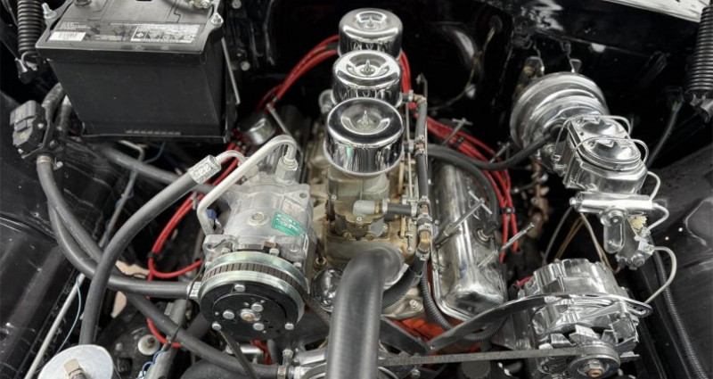 Le véhicule en question est un Chevrolet Bel Air Sport Coupe (Hardtop) de 1956 rétabli avec soin en noir jet et chrome brillant. Le moteur a été amélioré avec un V8 de coffre neuf, un carburateur quatre étages et une boîte manuelle Muncie 4-rapidités à pont bas. Ce véhicule offre une performance de l'ère muscle fiable, avec des démarches régulières et des changements de vitesse précis, tout en attirant l'attention de partout. Ce modèle dispose d'un intérieur entièrement noir, propre et classique. Sa carrosserie présente un fini de peinture à haute brillance et de brillants éléments chromés. La structure de base et l'empattement sont solides, tandis que l'empattement est typique d'une hardtop (sans pilier B). Il a été entretenu de manière méticuleuse depuis sa rénovation, étant gardé dans un garage et étant régulièrement soigné. Le véhicule est en parfait état, prêt à être exposé ou à être utilisé en routier.. Provenance : Texas, USA. Disponibilité : 7 semaines, clés en main. 72 500 € tout compris (import, taxes, procédure d'immatriculation). Annonce publiée le 15/10/2025
