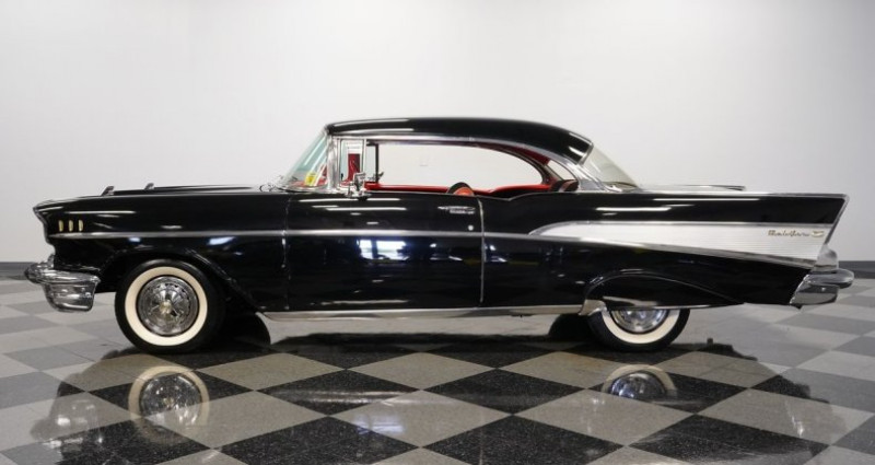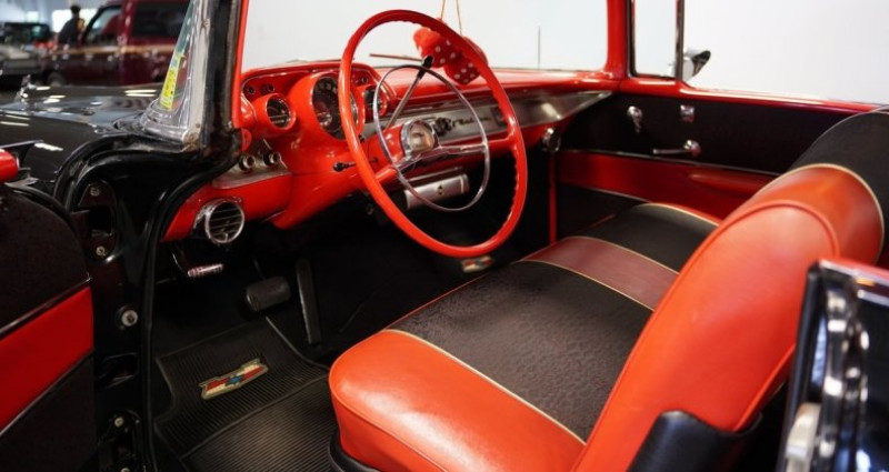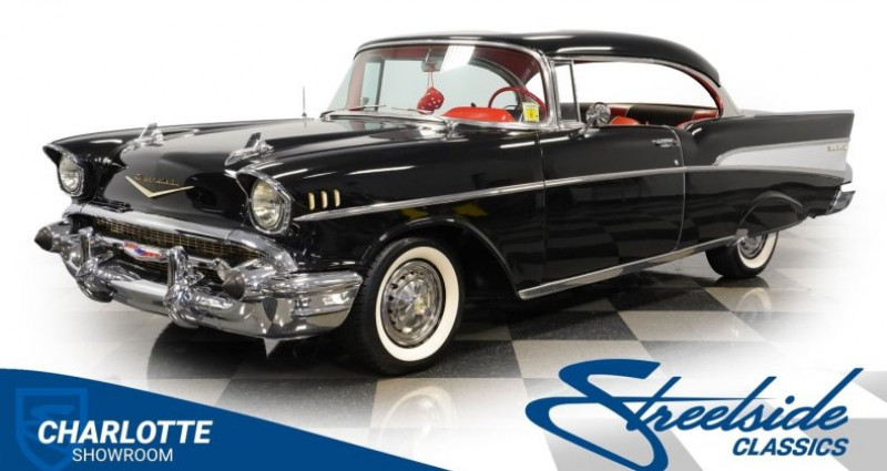 Ce véhicule est un Chevrolet Bel Air de collection du type hardtop de couleur Noir Onyx avec un intérieur rouge. Il est équipé d'un moteur V8 de 283 cu et d'une boîte de vitesses automatique à 4 rapports. Le guidonage est assuré par une direction à puissance assistée, les freins sont à pompe et il est muni de suspensions arrière propres à la traction arrière. Le tableau de bord est équipé de fender skirts, de freins à puissance assistée, de radio Wonderbar, de doubles échappements et de roues de 14 pouces avec calage Chevrolet. L'intérieur dispose de sièges banquettes en noir et rouge. La voiture est dans un état général bon état avec des éventuelles petites imperfections dues à son âge et à son usage. Il est remis à neuf pour une vente par Streetside Classics, qui assure le maintien de véhicules de collection depuis plusieurs années. Le kilométrage indique 19, 190 miles. Le numéro de VIN est VC57N143776H.. Ce descriptif est basé sur les éléments communiqués par le propriétaire avec un traitement assisté. Merci pour votre indulgence en cas de formulation perfectible. Provenance : North Carolina. Disponibilité : 7 semaines, clés en main. 95 500 € tout compris (importation, taxes, procédure d'immatriculation). Annonce publiée le 23/10/2025