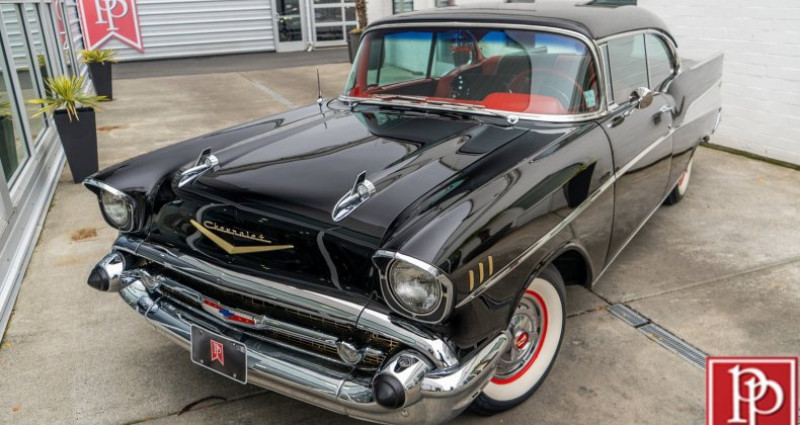 Ce 1957 Chevrolet Bel Air Sport Coupe est un exemple remarquable de la célèbre version de ce modèle, équipé d'une combinaison onyx noir et rouge/noir à l'intérieur et d'une finition en noir onyx à l'extérieur. La voiture se présente en très bon état, grâce à une restauration qui a eu lieu à la fin des années 1990 ou au début des années 2000. Malgré l'âge de la restauration, la voiture a été utilisé rarement depuis, ce qui permet de conserver un état de fonctionnement satisfaisant tout au long de la voiture. À l'époque, le coût de la restauration a été élevé, car, en plus de la finition du corps et de l'intérieur, la voiture a reçu un traitement complet sous la carrosserie et la baie moteur se présente en très bon état. La voiture est équipée de pneumatiques blancs larges à rayures et de jantes chromées d'origine. L'intérieur est très attrayant, avec des sièges d'avant et de derrière recouverts de vinyle rouge et de tissu noir. La table de bord et la roue de direction sont également recouverts de vinyle rouge. La table de bord est très jete-age dans son design avec un grand compteur de vitesse central et une large bande de métal brillant sur chaque côté de la colonne de direction. L'aménagement de l'intérieur a été réalisé à un niveau élevé et se présente comme neuf presque. Le moteur est un moteur V8 de 283 ci équipé d'un carburateur à quatre barrils, alimentant 245 chevaux de puissance. La puissance est transmise par une transmission automatique Powerglide à deux vitesses à l'arrière-roues. Le moteur fonctionne fluement et produit de la force et se présente magnifiquement sous la capote.. Ce descriptif est basé sur les éléments communiqués par le propriétaire avec un traitement assisté. Merci pour votre indulgence en cas de formulation perfectible. Provenance : Washington. Disponibilité : 7 semaines, clés en main. 54 000 € tout compris (importation, taxes, procédure d'immatriculation). Annonce publiée le 30/10/2025