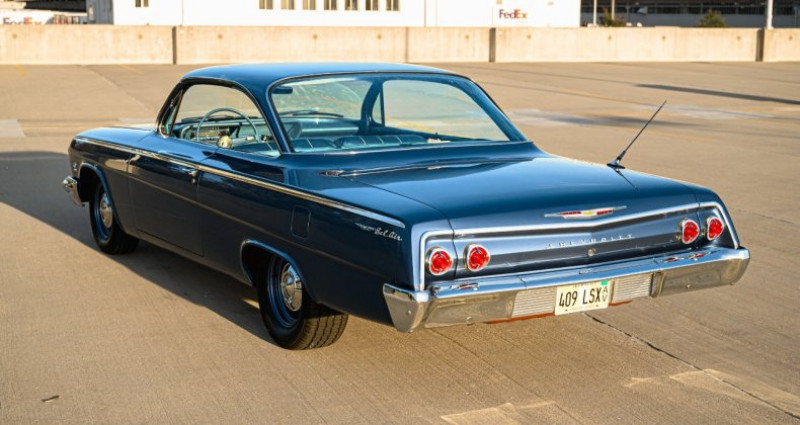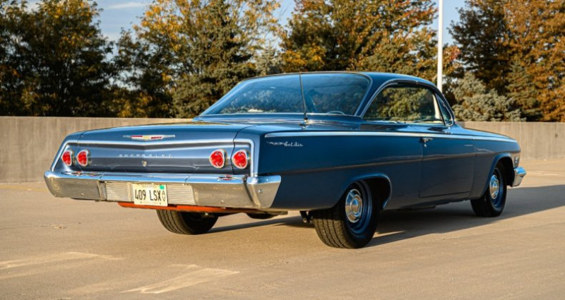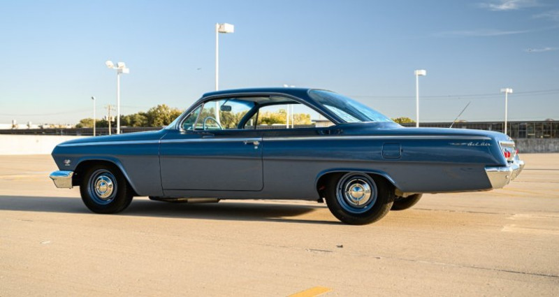 Ce 1962 Chevrolet Bel-Air Bubble Top Coupe a bénéficié d'une restauration professionnelle de haute qualité, réalisée avec un nettoyage complet de la structure et une conversion de toit (le véhicule était initialement une 2 portes post). La peinture originale 1962 GM Nassau Blue, avec des matériaux de première qualité et un aspect de base/clair, a été utilisée. Les pare-brise, les moulures extérieures et les accessoires ont été entièrement restaurés. Les roues de 15 pouces GM sont équipées de pneus BRAND de 215/70 pour l'avant et 255/60 pour l'arrière. L'intérieur a été complètement restauré, y compris la coussinette de siège, le tapis, les panneaux de portière et le tapis de plafond, par CARS INC. Les suspensions avant et arrière, ainsi que les freins ont été restaurés et améliorés. L'ensemble moteur est un bloc d'aluminium personnalisé construit par Texas Speed avec un taux de compression de 11:1 et des têtes de cylindre PRC/TSP nouveaux moules cathedral. Le véhicule est équipé d'une boîte de vitesses manuelle à 6 rapports et d'une transmission de différentiel 9 pouces coated Moser avec un rapport de 3, 70. Toutes les mises à jour électroniques et les composants supplémentaires ont été installés et optimisés.. Ce descriptif est basé sur les éléments communiqués par le propriétaire avec un traitement assisté. Merci pour votre indulgence en cas de formulation perfectible. Provenance : Illinois. Disponibilité : 7 semaines, clés en main. 138 500 € tout compris (importation, taxes, procédure d'immatriculation). Annonce publiée le 05/11/2025
