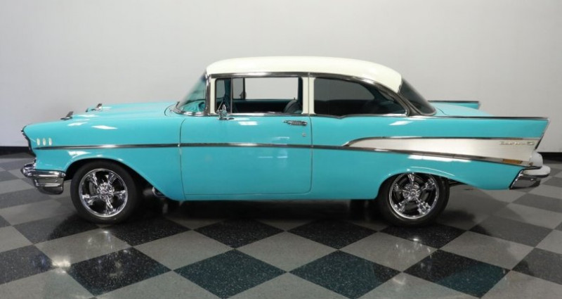 Ce véhicule, un Bel Air Chevrolet de 1957, équipé d'un moteur V8 de 350 cu (avec boite automatique 3 vitesses TH400, carburateur Holley 4-barrel et ignition MSD), présente également un freinage assisté, un volant régulateur et une climatisation. La peinture extérieure est du Tropical Turquoise, et la peau intérieure est également turquoise avec banquettes pliables en cuir. Le véhicule dispose également d'un radiateur aluminium amélioré, des amortisseurs d'aide, des diffuseurs d'échappement FlowMaster et des roues Ridler de 17 pouces avec pneus de 215/55R17 (avant) et 235/60R17 (arrière). Le véhicule a effectué un kilométrage de 949 miles. Le véhicule original VIN est VC57A1022055071-TPA. Les photographies complètes sont disponibles sur le site Web eBay. Tous les véhicules sont vendus dans l'état dans lequel ils se trouvent actuellement, sans aucune garantie explicite ou implicite.. Ce descriptif est basé sur les éléments communiqués par le propriétaire avec un traitement assisté. Merci pour votre indulgence en cas de formulation perfectible. Provenance : Florida. Disponibilité : 7 semaines, clés en main. 60 000 € tout compris (importation, taxes, procédure d'immatriculation). Annonce publiée le 06/11/2025