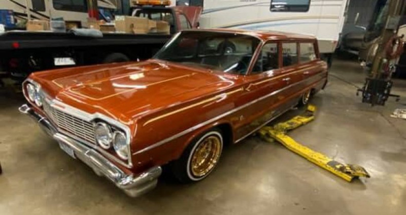 Un 1964 Chevrolet Bel Air Wagon à carrosserie basse est en vente. Cette voiture est équipée d'un moteur V8 de 350 ci associé à une boîte automatique. Le véhicule est doté d'une configuration hydraulique à deux pompes / six batteries, ce qui lui permet de rouler en style sur les rues, mais également de se lever pour une présentation impressionnante. La configuration hydraulique comprend deux pompes Hoppos, quatre décharges, six batteries, quatre interrupteurs, FBSS (front, back, side to side) et seize cylindres en tous sens. Cette voiture de collection est en très bon état général, avec une carrosserie propre et une peinture impeccable, sans problèmes de rouille. Elle offre un espace pour six personnes et conserve sa silhouette de wagon classique avec un empattement personnalisé.. Provenance : , USA. Disponibilité : 7 semaines, clés en main. 41 000 € tout compris (import, taxes, procédure d'immatriculation). Annonce publiée le 12/11/2025