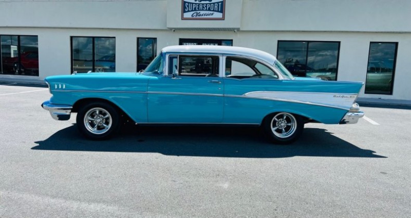 Voici le détail technique de la voiture en vente : - Modèle : 1957 Chevy 210 - Motorisation : Moteur V8 de 350 cu, transmission automatique - Couleur extérieure : Turquoise, intérieure : Gris - Type de carrosserie : Coupe - Options : Distributeur HEI, Aluminium intake et valve covers polis, soupapes augmentées, système de climatisation amélioré, radiateur en aluminium, volant chrome avec direction ajustable, freinage et direction assistés, pneus BFGoodrich sur des roues American Racing et plus encoreCette Bel Air est conçue pour être conduite et appréciée ! La combinaison de moteur V8 de 350 cu et de transmission automatique facilite l'avancement sur la route. Le système de climatisation amélioré garantira une conduite agréable et confortable pour son nouveau propriétaire tout en attirant les regards partout où il roulera ! Cette voiture est sûrement l'envie de voisins et de tous les concours d'élégance ! C'est peut-être l'une des voitures les plus iconiques de l'histoire américaine ! Ne manquez pas cette occasion de la posséder ! Des visites guidées et essais en conduite sont disponibles à la demande. Nos services techniques peuvent ajouter toutes les options que vous souhaitez ! Nous sommes autorisés concessionnaire de Vintage AC, RideTech Suspension, CVF Racing, Wilwood Brakes, et Dakota Digital Gauges. N'hésitez pas à contacter notre service pour plus d'informations et découvrir nos autres classiques en vente sur notre site Internet.. Ce descriptif est basé sur les éléments communiqués par le propriétaire avec un traitement assisté. Merci pour votre indulgence en cas de formulation perfectible. Provenance : Florida. Disponibilité : 7 semaines, clés en main. 52 000 € tout compris (importation, taxes, procédure d'immatriculation). Annonce publiée le 13/11/2025