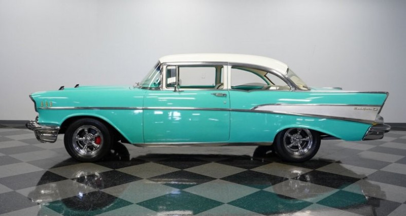 Ce véhicule est un Chevrolet Bel Air équipé d'un moteur V8 de 327 cu, transmission 4 vitesses automatique et train arrière (RWD). Le moteur est équipé d'un carburateur 4-barrel Edelbrock et d'un radiateur en aluminium. Les freins sont à disques à l'avant, avec des calipers Wilwood, et l'échappement est double. Le véhicule est peint en turquoise et blanc à deux tons. L'intérieur est également turquoise et blanc avec des sièges basculants et une console centrale après-marché. Le véhicule est également équipé d'un climatiseur, d'un système audio AM/FM/AUX et de direction assistée. Le kilométrage est de 3 282.. Ce descriptif est basé sur les éléments communiqués par le propriétaire avec un traitement assisté. Merci pour votre indulgence en cas de formulation perfectible. Provenance : North Carolina. Disponibilité : 7 semaines, clés en main. 50 500 € tout compris (importation, taxes, procédure d'immatriculation). Annonce publiée le 17/11/2025