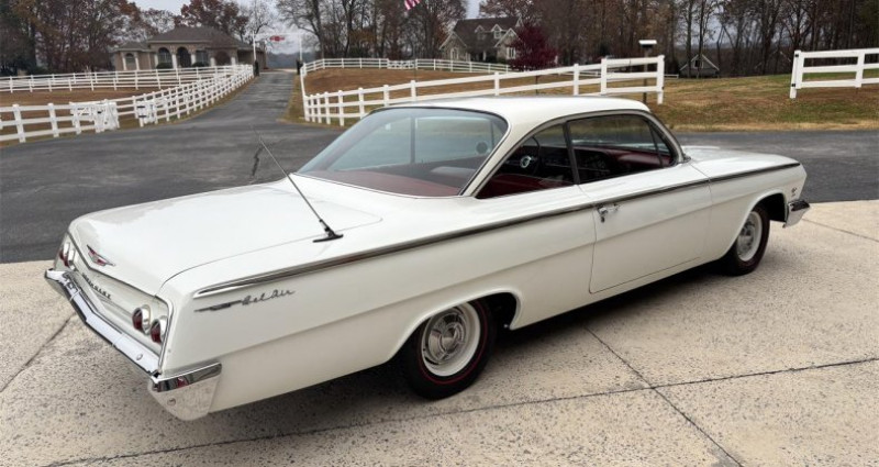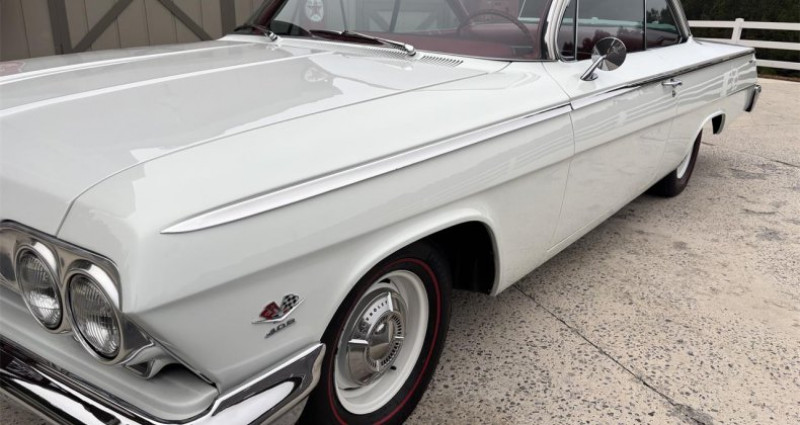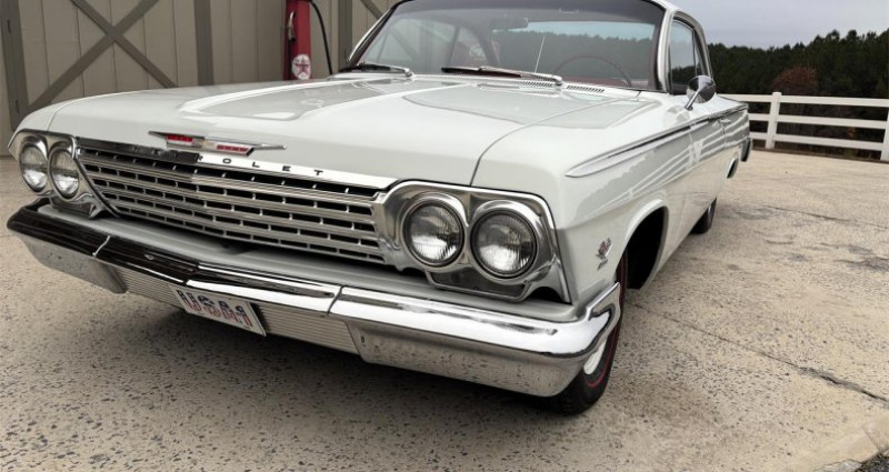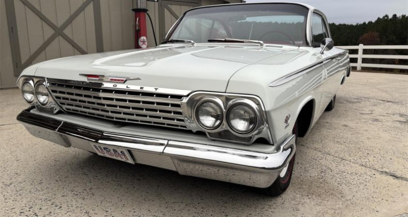 Informations fournies par le vendeur : 1962 Chevrolet BelAir Bubble Top, 62 QB code, two four barrel 409 cid, 409 hp engine, square port heads, Plenum Air Induction System, Borg T10 4 speed transmission with 4:11 posi - traction rear end, coated Doug Headers, original exhaust manifolds, heater delete, AM Radio, Sun Tach, Tinted Glass, T3 Headlights, Rear Antenna, spare tire and jack, 14” steel wheels with red line tires, solid, great paint, stock red interior, spaghetti shifter, Dual Quad, Four Speed, Posi-traction 409, located in Chattanooga, Tennessee area, asking $98, 500 including shipping to continental US.. Provenance : Tennessee, USA. Disponibilité : environ 7 semaines, clés en main. 99 500 € tout compris (import, taxes, procédure d'immatriculation). Nous représentons les acheteurs sur le marché nord-américain et sécurisons chaque étape du processus, de la sélection jusqu’à la mise en circulation en Europe. Basés en France, nous faisons bénéficier nos clients d’un réseau solide de vendeurs professionnels, de collectionneurs privés, d’experts indépendants et de partenaires logistiques présents sur l’ensemble des États-Unis et du Canada. Annonce publiée le 21/11/2025