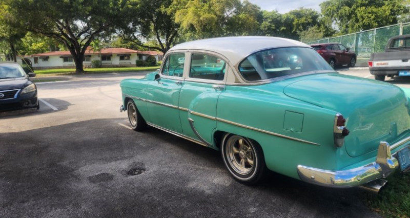 1953 Chevy Bel Air, Chevy small block V8 engine with Throttle Body Injection (TBI), automatic transmission, front disc brakes, air conditioning. $18, 500 OBO (Payment methods: wire transfer, cashier's check, cash in person). Provenance : Florida. Disponibilité : environ 7 semaines, clés en main. 25 000 € tout compris (importation, taxes, procédure d'immatriculation). Annonce publiée le 25/11/2025