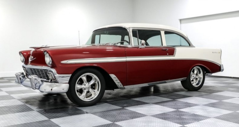 1956 Chevrolet Bel Air, Red / White Coupe, 502 Big Block V8, Turbo 400 automatic, RWD, Custom Interior, Power Steering, Power Brakes, Long Tube Headers, Front Disc Brakes, Dual Exhaust, Two Tone Paint, Two Tone Interior, Ididit Tilt Steering Column, Electronic Ignition Conversion, Edelbrock Intake, Dual Edelbrock Carburetors, Dakota Digital Gauges, Custom Trunk Enclosure, Boyd Coddington Wheels, Aluminum Radiator with Electric Fan, Aftermarket Sound System. Provenance : Texas. Disponibilité : environ 7 semaines, clés en main. 52 500 € tout compris (importation, taxes, procédure d'immatriculation). Annonce publiée le 25/11/2025