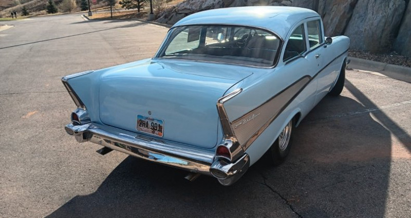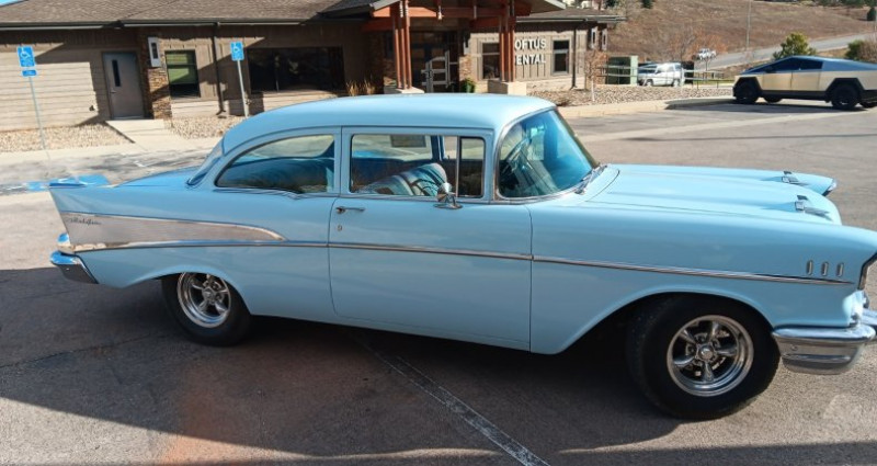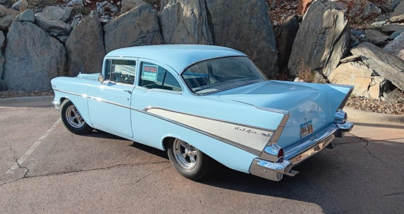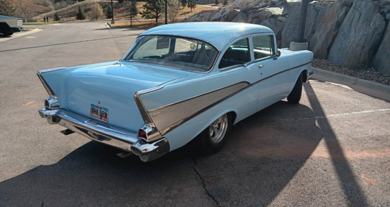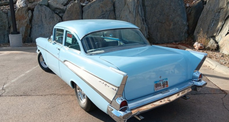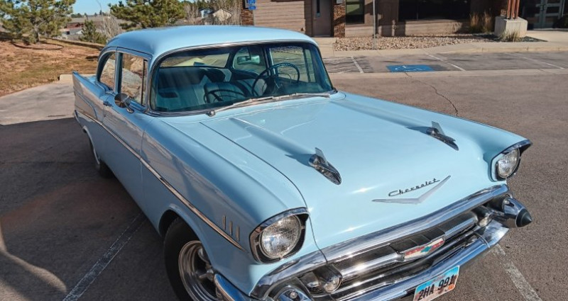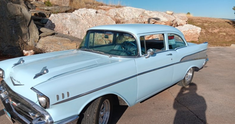 1957 Chevrolet Bel Air/150/210, blue (excellent paint, no rust, blue interior), 04295 mileage, tilt steering wheel, air conditioning, like new tires, sway bars and struts, dual exhaust, 350 engine, automatic transmission. Provenance : South Dakota. Disponibilité : environ 7 semaines, clés en main. 41 000 € tout compris (importation, taxes, procédure d'immatriculation). Annonce publiée le 28/11/2025