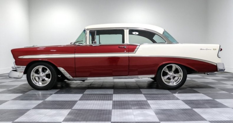1956 Chevrolet Bel Air, Red / White, Custom Interior, Power Steering, Power Brakes, Long Tube Headers, Front Disc Brakes, Dual Exhaust, Big Block 502ci, Turbo 400 automatic, RWD, Ididit billet steering wheel, Electronic Ignition Conversion, Edelbrock Intake, Dual Edelbrock Carburetors, Dakota Digital Gauges, Custom Trunk Enclosure, Boyd Coddington Wheels, Aluminum Radiator with Electric Fan, Aftermarket Sound System. Provenance : Texas. Disponibilité : environ 7 semaines, clés en main. 52 000 € tout compris (importation, taxes, procédure d'immatriculation). Annonce publiée le 28/11/2025