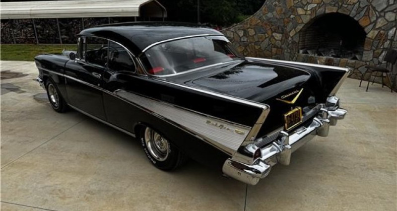 1957 Chevrolet Bel Air Hardtop. Moteur Chevy 283cid V8. Alimentation 4 glaces. Roues 245/60R15 avant et arrière BFG. Suspension améliorée avec jambes de suspensions tubulaires avant et ressorts à feuilles arrière. Freins à disque avant et arrière. Peinture Tuxedo Noir brillant. Excellent pare-chocs et emblèmes. Excellent verre. Intérieur noir et rouge classique. Mètre de chaîne 5, 170. Détails sur la garantie demandés de contact.. Provenance : North Carolina. Disponibilité : environ 7 semaines, clés en main. 59 500 € tout compris (importation, taxes, procédure d'immatriculation). Annonce publiée le 01/12/2025