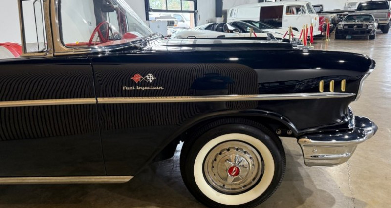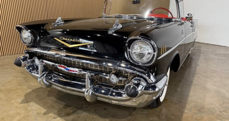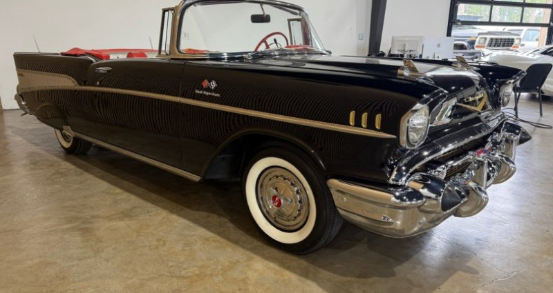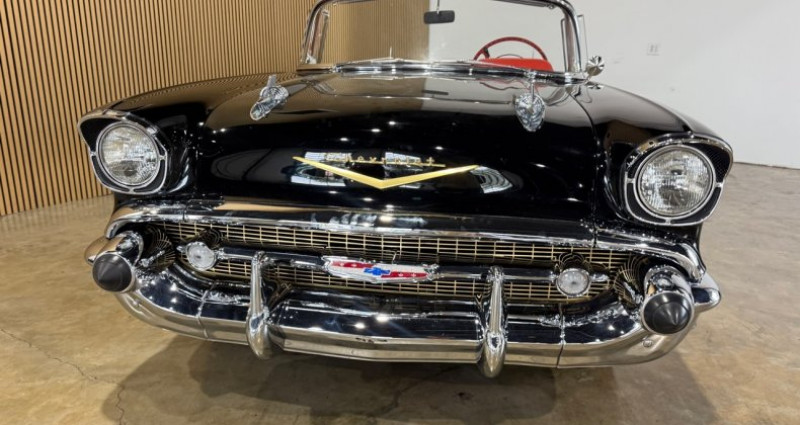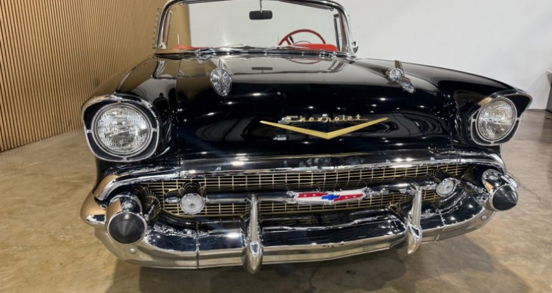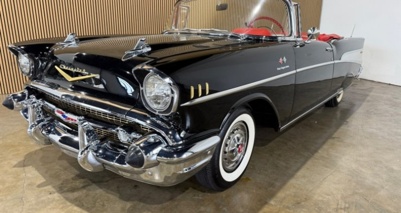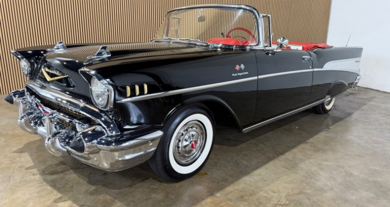 1957 Chevrolet BelAir Convertible. Moteur Rochester Ramjet 283 V8. Boîte mécanique Automatique. 2 roues motrices. Peinture en noir brillant, chromage brillant, script Bel Air. Pneus blancs larges, jantes spinneuses, toile de couverture mécanique. Intérieur en deux tons rouge et argent. Pieds-leviers, instruments originaux, tableau de bord typique 1957. Condition généralement bonne. Mise à jour d'inventaire pour obtenir des mises à jour.. Provenance : Florida. Disponibilité : environ 7 semaines, clés en main. 137 500 € tout compris (importation, taxes, procédure d'immatriculation). Annonce publiée le 01/12/2025