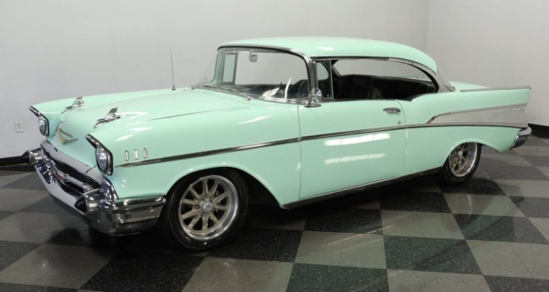 - Marque : Chevrolet - Modèle : Bel Air - Année : 1957 - Moteur : 6.2L LS3 V8 (moteur provenant d'un Camaro de 2018) - Boîte de vitesses : 6 vitesses manuelle Tremec T56 - Freins : 4 roues à disque de puissance - Suspension : A-arm avant avec amortisseurs de suspension - Couleur extérieure : Vert clair - Pneus : 17 US Mag avec 225/55ZR17 pneus - Intérieur : Sièges baquets noirs en cuir vinyle et banquette arrière - Climatisation : Oui - Autres équipements : Gauges Dakota Digital, console centrale personnalisée avec le levier de vitesses Hurst, radio RetroSound, commandes de climatisation d'époque, colonne de direction réglable, fenêtres électriques, batterie Optima Red Top (montée dans le coffre). Provenance : Florida. Disponibilité : environ 7 semaines, clés en main. 74 000 € tout compris (importation, taxes, procédure d'immatriculation). Annonce publiée le 06/12/2025
