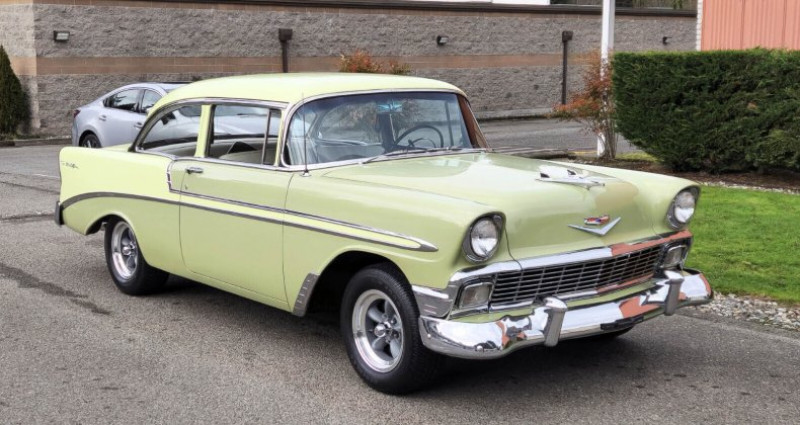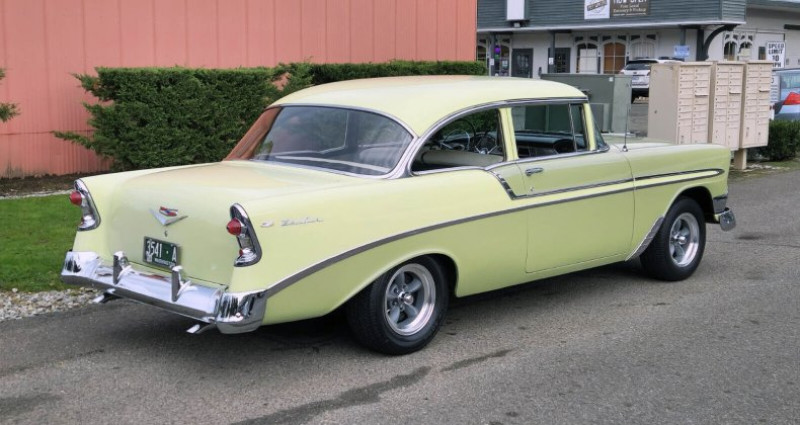 - Année : 1956 - Modèle : Chevrolet Bel Air 2-portes Post - Lieu de construction : Oakland, Californie - Moteur : 350 c.i., 300 ch - Intake : Performer - Carburateur : Edelbrock - Distributor : HEI - Échappement : Doug's stainless headers - Alternateur et moteur de balayage : récemment réparés - Peinture : presque originale - Sièges, panneaux de porte, tableau de bord et moldings de tableau de bord : originaux - Arrière : stainless steel, réchromé, gravel guards - Vitre avant : neuve, avec garniture neuve - Coffre : neuf, avec mat de coffre neuf - Roues : nouveaux, dans le style Torq Thrust américain, pneus (roues arrière plus gros que roues avant) - V.I.N. : VC560007356 - Numéro d'inventaire : 2580778 - Kilométrage : 893 miles - Livraison gratuite en décembre uniquement - Prix : 39 950 $. Provenance : Washington. Disponibilité : environ 7 semaines, clés en main. 44 500 € tout compris (importation, taxes, procédure d'immatriculation). Annonce publiée le 08/12/2025
