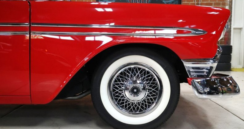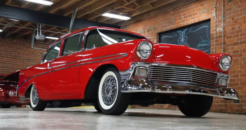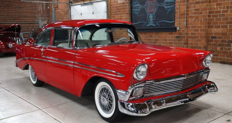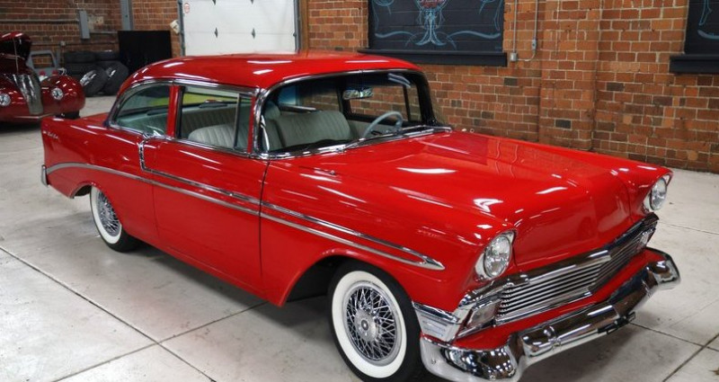 - Année : 1956 - Modèle : Chevrolet Bel Air - Couleur extérieure : Rouge - Intérieur : Cuir blanc - Moteur : 350CI V8 - Boîte de vitesses : 350 Turbo automatique - B&M shifter - Freinage : Pneumatique - Orientation : Droite - Équipements : Radio AM/FM, freinage, direction assistée, fenêtres électriques, volant cuir. Provenance : , USA. Disponibilité : environ 7 semaines, clés en main. 58 000 € tout compris (import, taxes, procédure d'immatriculation). Annonce publiée le 09/12/2025