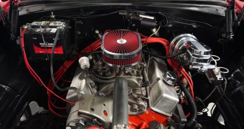 - Marque : Tri Five - Moteur : 350 V8 - Boîte de vitesses : 3 vitesses automatique TH350 - Couleur extérieure : Rouge foncé - Couleur intérieure : Marron - Freinage : Freinage avant assisté par puissance - Pneus : 245/35ZR20 avant, 275/35ZR20 arrière sur roues de 20 pouces American Racing - Travaux : Radiateur aluminium, Dual exhaust avec Thrush Mufflers, Edelbrock 1405 Carburetor avec manuel choke, Aluminum Radiator, Power Steering - Kilométrage : 54 756 - VIN original : B56A110166. Provenance : Tennessee. Disponibilité : environ 7 semaines, clés en main. 53 500 € tout compris (importation, taxes, procédure d'immatriculation). Annonce publiée le 10/12/2025