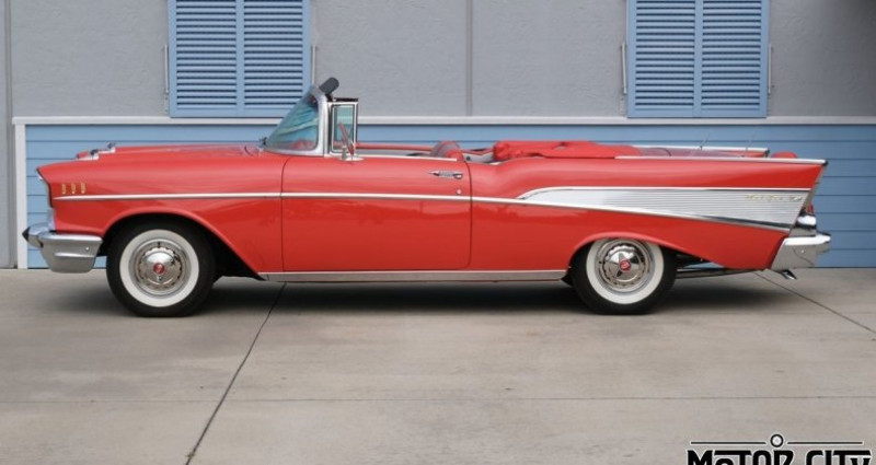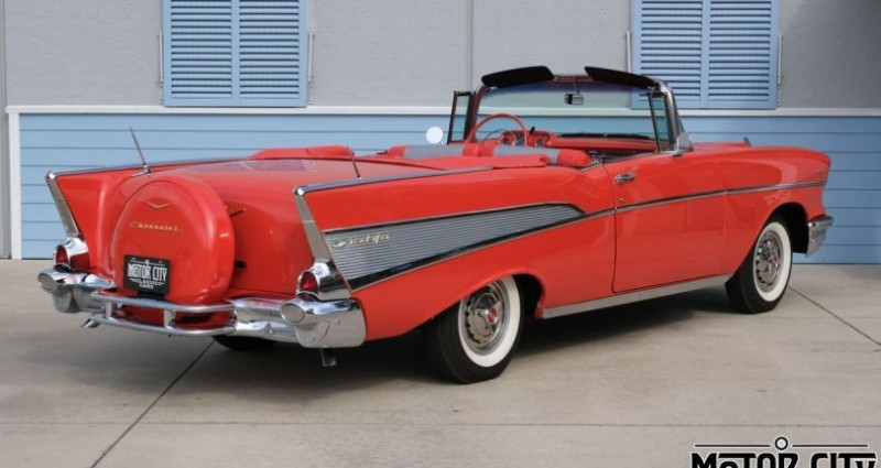 - Marque : Chevrolet - Modèle : Bel Air - Année : 1957 - Numéro de stock : GLS182 - Couleur extérieure : Rouge Matador - Couleur intérieure : Rouge et Argent - Transmission : Automatique - Moteur : 283 ci V8 - Travaux : Restauration nut et bol rotisserie - Options : Toit convertible blanc en tissu, équipement audio moderne, jantes avec couvertures de roues, kit de jantes, fender skirts, antennes doubles, échappements doubles, kit de Continental, plancher en oxyde rouge. Provenance : Florida. Disponibilité : environ 7 semaines, clés en main. 135 000 € tout compris (importation, taxes, procédure d'immatriculation). Annonce publiée le 11/12/2025