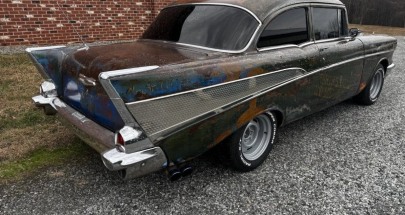 - Marque : Chevrolet - Modèle : Bel Air Streetrod - Année : 1957 - Couleur extérieure : Vert satin-lustre - Couleur intérieure : Noir - Type de carrosserie : Sedan - Transmission : 4 vitesses manuelle - Moteur : 350cid V8 - Drivetrain : Propulsion arrière - Échappement : Dual glass-pack avec 4 sorties - Pneus : Rallye avec 235/60R15 (avant et arrière). Provenance : North Carolina. Disponibilité : environ 7 semaines, clés en main. 39 500 € tout compris (importation, taxes, procédure d'immatriculation). Annonce publiée le 15/12/2025