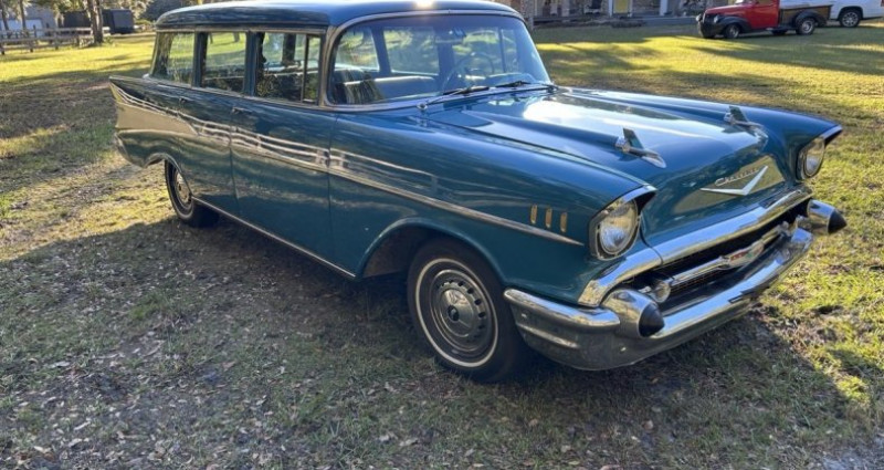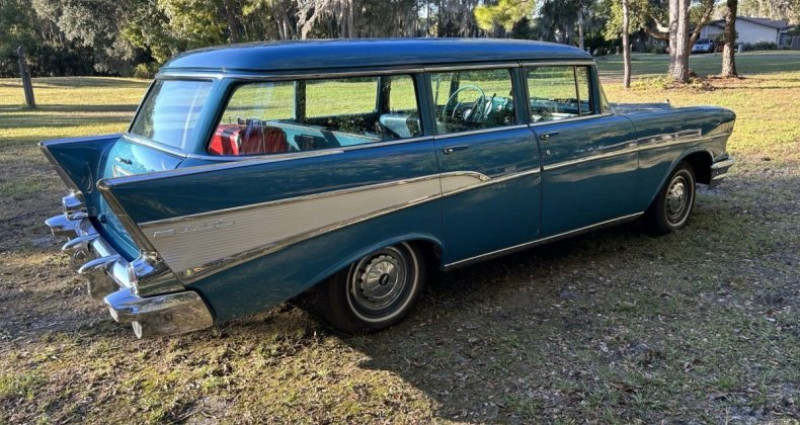 - Marque : Chevrolet - Modèle : Belair Wagon - Année : 1957 - Moteur : 350 (années 70) - Boîte de vitesses : Turbo 350 - Couleur : Non spécifiée - État : Needs nothing, a été conduite pendant 5 ans - Intérieur : Rénové après infestation de souris, intérieur et carrosserie en bon état - Rust : Aucun - Transmission : V8 - Inscription : New York (NYS). Provenance : Florida. Disponibilité : environ 7 semaines, clés en main. 40 000 € tout compris (importation, taxes, procédure d'immatriculation). Annonce publiée le 18/12/2025