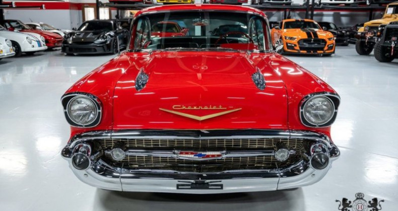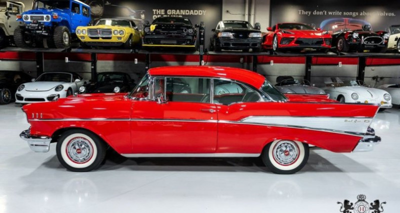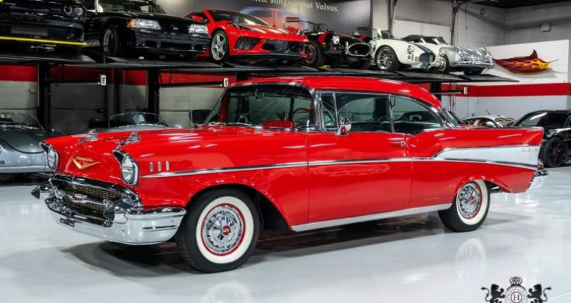 - Marque : Chevrolet - Modèle : Bel Air - Année : 1957 - Couleur extérieure : Rouge et Blanc - Couleur intérieure : Noir et Argent - Sellerie : Cuir - Moteur : 283 V8 (Carburé) - Boîte de vitesses : Automatique - Transmission : Propulsion arrière - Kilométrage : 4 765 miles - État : Utilisé - Titre propre : Oui - Radio : Radio à style rétro (capable Bluetooth) - Climatisation : Oui - Freins : Freins à disque avant - Freins à tambour arrière - Roue de secours : Oui - Jack : Oui - Autres équipements : Horloge de tableau de bord, freins à main, etc. - Condition : Garé et montré à rendez-vous uniquement - Inventaire : Consulté sur le site web hubbardautocenter.com. Provenance : Arizona. Disponibilité : environ 7 semaines, clés en main. 62 500 € tout compris (importation, taxes, procédure d'immatriculation). Annonce publiée le 27/12/2025