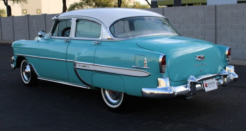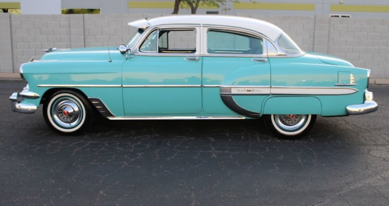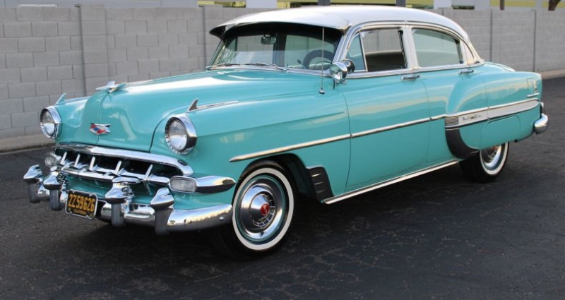 - Marque : Chevrolet - Modèle : BelAir - Année : 1954 - Couleur extérieure : Teal - Couleur intérieure : Gris - Type de carrosserie : Sedan - Boîte de vitesses : Automatique - Transmission : RWD - Mileage : 54, 051 miles - État : Clair titre - Travaux : Aucun renseignement fourni. Provenance : Arizona. Disponibilité : environ 7 semaines, clés en main. 39 000 € tout compris (importation, taxes, procédure d'immatriculation). Annonce publiée le 03/01/2026