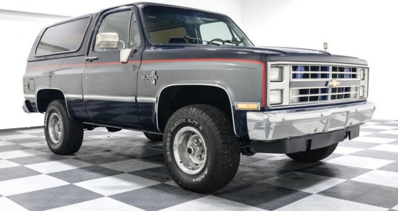 1986 Chevrolet Blazer • 350ci V8 • 700r4 Automatic Overdrive • 4X4 • Blue/Gray • Bucket Seats w/ Console • Tilt Steering Column • Receiver Hitch • Power Steering • Power Brakes • Long Tube Headers • Front Disc Brakes • Holley Sniper EFI • Edelbrock Aluminum Intake • Chevrolet Performance Valve Covers + Air Cleaner • Aluminum Radiator with Electric Fan • 31x10.50R15 Tires • 15 inch Chevrolet rally wheels. Provenance : Texas. Disponibilité : environ 7 semaines, clés en main. 45 000 € tout compris (importation, taxes, procédure d'immatriculation). Annonce publiée le 29/11/2025