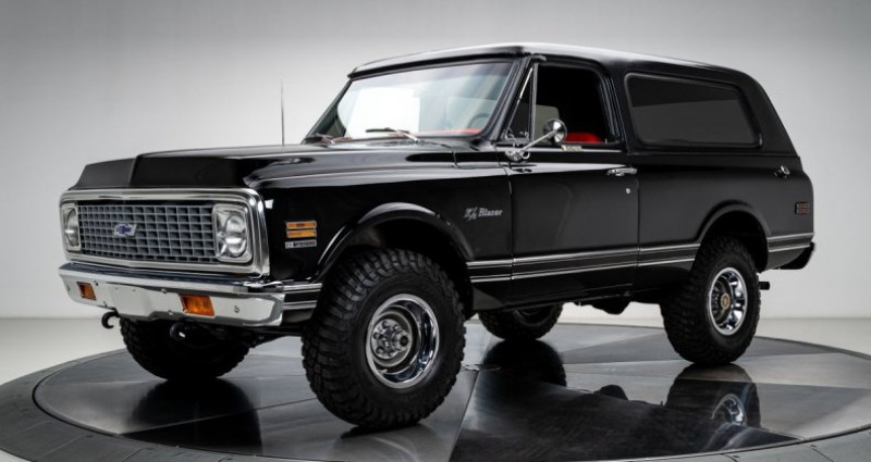 - Marque : Chevrolet - Modèle : K5 Blazer - Année : 1971 - Type de carrosserie : SUV - Couleur extérieure : Noir - Couleur intérieure : Rouge - Moteur : 350ci V8 - Boîte de vitesses : Automatique 3 vitesses - Transmission 4x4 - Pneus : 33x10.50 BFGoodrich Mud-Terrain sur des roues de 15 - Kilométrage : 50 312 - Équipements : Air conditionné, Bluetooth, Siège baquet avant, Siège arrière, Radio avec récepteur Bluetooth, Compressor A/C moderne, Échappement double, Freinage avant à disques, Transfert de puissance NP205 robuste et fiable, Dana 44 essieu avant, 12 bolt essieu arrière avec 3.07 gears. Provenance : North Carolina. Disponibilité : environ 7 semaines, clés en main. 90 500 € tout compris (importation, taxes, procédure d'immatriculation). Annonce publiée le 10/12/2025