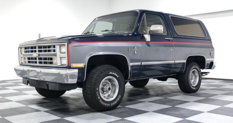 - Année : 1986 - Marque : Chevrolet - Modèle : K5 Blazer - Type de carrosserie : SUV - Couleur extérieure : Blue/Gray - Couleur intérieure : Blue - Moteur : 5.0L Gas V8 - Boîte de vitesses : 700r4 Automatic - Kilométrage : 91 976 miles - Transmission intégrale : Oui (4x4) - Freins avant : Disques - Pneus : 31x10.50-15 - Options : Boîte de vitesses automatique, direction assistée, freins assistés, fenêtres électriques, verrous électriques, fenêtre arrière électrique, sièges baquet, intérieur en aluminium, radiateur en aluminium avec ventilateur électrique, roues de rallye Chevrolet de 15 pouces, système d'injection Holley Sniper EFI, couvercles de soupapes Chevrolet Performance, capot en aluminium Edelbrock, freins arrière verrouillés, tuyaux d'échappement allongés, roues de 15 pouces Chevrolet, pneus 31x10.50-15. Provenance : Texas. Disponibilité : environ 7 semaines, clés en main. 44 000 € tout compris (importation, taxes, procédure d'immatriculation). Annonce publiée le 25/12/2025