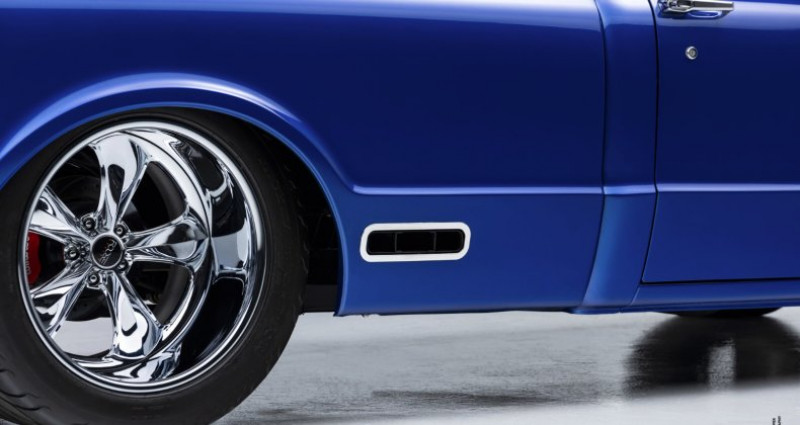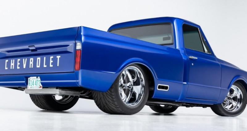 Ce véhicule est un C10 de 1968, construit pour l'édition 2015 de la SEMA et conservé depuis lors en intérieur. Les photos de l'annonce datent de septembre 2024. La châssis est une pièce personnalisée fabriquée par No Limit Engineering et est équipée d'une suspension arrière 5-barres personnalisée avec un differentiel posi-traction Currie 9 pouces Ford arrière rétréci et équipé d'axes durs de 3, 73. La suspension avant est indépendante avec des godets réglables et un ensemble de direction Mustang II. Les freins sont des unités slotted de 13 pouces Wilwood. L'échappement est équipé de tubes de soudure de Dr. Gas employés sur les voitures de course NASCAR, sortant devant les roues arrière. L'empattement est personnalisé avec des roues Foose de 18x10 pouces à l'avant et 20x15 pouces à l'arrière. Les pneumatiques sont des Mickey Thompson Sportsman S/R de 10 pouces à l'avant et de 16 pouces à l'arrière. Sauf les poignées de portes, le corps a été complètement ravalé, y compris le rayon de ruissellement de cabine et le remplissage de la poignée de carburant, des lignes de signalisation latérales et de la boîte à sel. La capote de 1969 a été supprimée au profit d'un modèle de 67/68. La boîte a été tubbée avec un sol de boîte élevé de 4 pouces pour accueillir les pneumatiques imposants. La boîte à outils est en hickory avec des bandes en acier inoxydable, tous avec des vis cachées. L'intérieur est tout à fait personnalisé avec des tapis de premier choix et du cuir importé d'Écosse. L'intérieur comprend un écran tactile de 7 pouces Pioneer avec un lecteur DVD et une navigation. Tous les instruments sont Auto Meter.. Ce descriptif est basé sur les éléments communiqués par le propriétaire avec un traitement assisté. Merci pour votre indulgence en cas de formulation perfectible. Provenance : Idaho. Disponibilité : 7 semaines, clés en main. 104 500 € tout compris (importation, taxes, procédure d'immatriculation). Annonce publiée le 17/10/2025