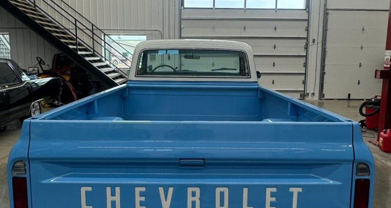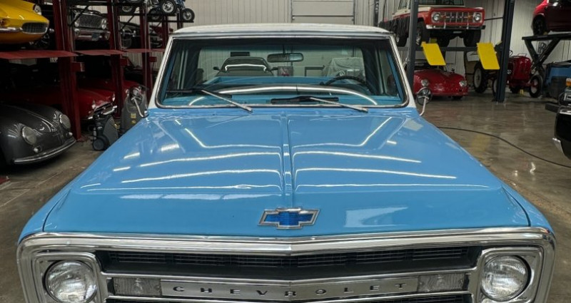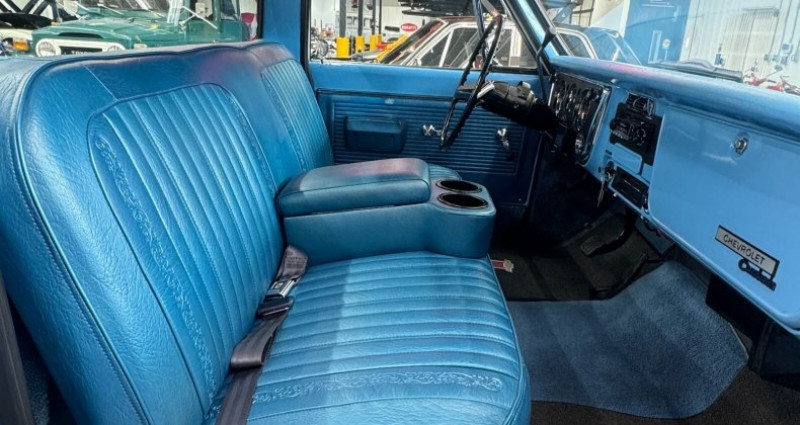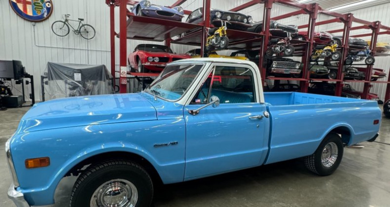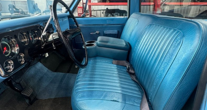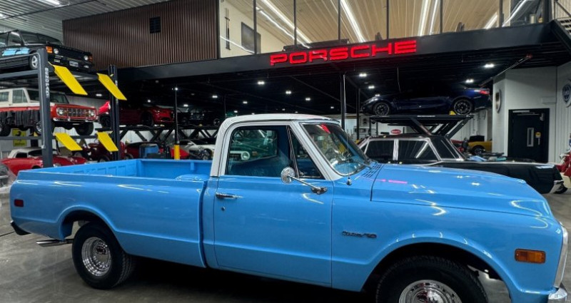 Voici un modèle 1969 Chevrolet C10 de couleur bleu clair. Ce véhicule est équipé d'un moteur V8 de 327 ci sous le capot avec transmission automatique TH350. Il dispose d'un système de carburation Holley Sniper EFI, de soupapes et de soupapes de commande Comp Cams, d'un entraînement d'admission Edelbrock Performer RPM, de freins et de direction assistés, d'un climatiseur vintage, de bolts d'admission ARP, d'un régulateur de frein Wilwood, de collecteurs d'échappement, d'une ignition HEI, d'un système de remplissage de freins, d'un capot de réservoir de carburant redessiné et d'une peinture inlay sur la litière. La batterie, le capot de réservoir de liquide de refroidissement, le capot du compteur de vitesse et le capot du capot de réservoir de lavage ont été remplacés récemment. Des haut-parleurs personnalisés ont été installés dans la plinthe du tableau de bord. Le véhicule dispose d'un tableau de bord en vinyle bleu avec repose-bras retirables. Il roule sur des roues en chrome avec pneumatiques radiaux. Le lit de charge a été fini en bois avec des inserts peints. Ce véhicule est prêt pour sa nouvelle résidence ! Nous pouvons effectuer un transport à l'échelle nationale à compter d'une frais de transport supplémentaire en fonction de votre emplacement.. Ce descriptif est basé sur les éléments communiqués par le propriétaire avec un traitement assisté. Merci pour votre indulgence en cas de formulation perfectible. Provenance : South Dakota. Disponibilité : 7 semaines, clés en main. 36 500 € tout compris (importation, taxes, procédure d'immatriculation). Annonce publiée le 12/11/2025