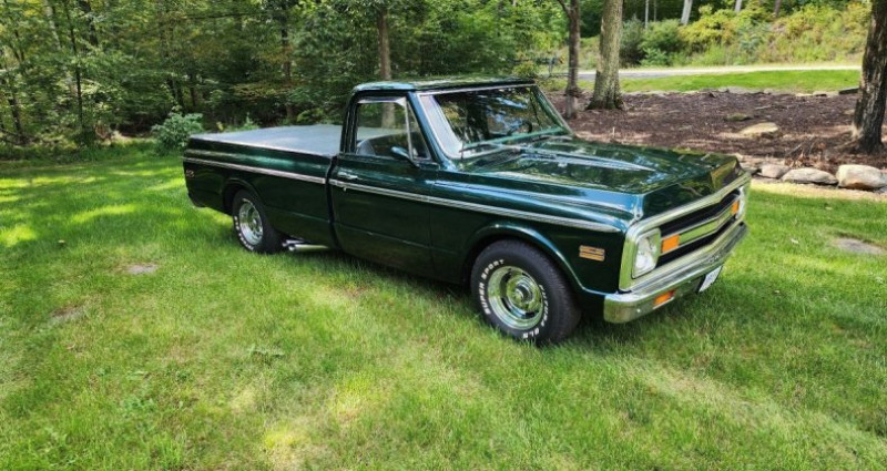 Cet ancien Chevrolet C-10 de 1970 possède un moteur V8 de 350 cubic inches, une boîte de vitesses à quatre rapports sans rapport long (Granny gear), et a été réduite en hauteur. Le véhicule est peint en vert et possède un titre propre. Le kilométrage est de 99 029. Il est équipé d'une couverture de coffre et le réservoir de carburant a été déplacé avec le robinet de remplissage dans l'arrière du coffre. Il dispose d'admission d'air, d'échappement loud et d'échappement latéral. L'arrière du coffre est revêtu. La restauration a été effectuée par un précédent propriétaire et le véhicule est en état de fonctionnement excellent, principalement utilisé pour des promenades de week-end. Les seules modifications apportées sont la remplacement du dispositif de commande de chauffage à l'arrière. L'état général du véhicule est presque parfait, avec quelques imperfections. Aucune question, n'hésitez pas à me contacter.. Ce descriptif est basé sur les éléments communiqués par le propriétaire avec un traitement assisté. Merci pour votre indulgence en cas de formulation perfectible. Provenance : Pennsylvania. Disponibilité : 7 semaines, clés en main. 31 000 € tout compris (importation, taxes, procédure d'immatriculation). Annonce publiée le 16/11/2025