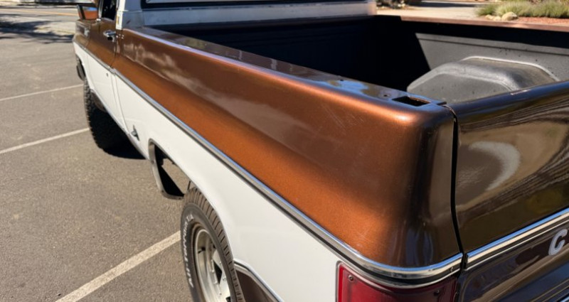 Informations fournies par le vendeur : 1973 Chevrolet K10 4x4 Truck • Custom • Squarebody • 350 V8 engine, rebuilt approximately 5 years ago • 2BBL Carburetor • Stock exhaust manifold • Dual exhaust • 350TH Automatic Transmission, rebuilt 2 years ago • NP205 4WD transfer case • Dual Saddle gas tanks • Power Steering • Power Brakes • AM/FM after market stereo • Bed Liner • BFG All Terrain 15” Tires • 15” Alloy Wheels • Paint and Body, metallic bronze and white 2 tone, approximately 5 years old, 5 out of 10 with no visible rust on the exterior • Interior is stock bench brown cloth • New dash pad and new sun visors • Bench seat has no rips or tears and shows no significant signs of wear • Doors have been cut for 6 inch speakers and after market stereo head unit in dash • Rear slider window • Approximate mileage unknown, odometer is not connected and is currently non operational • Front and rear bumpers have been replaced or re-chromed • No rust in bottom of doors, rocker panels have been replaced or repaired • Floor pans have been patched, bed is straight with zero rust, tail gate is straight no rust • Short bed • Starts, runs, and drives very well with no problems • Sounds great, handles nice and rides very good • Very dependable round town truck with zero mechanical issues • California title and current California DMV registration • Contact Greg at 951.348.5794 for more information • Not a dealership, personally inspected and evaluated in Southern California • Pre-Purchase inspection is suggested and encouraged before purchase • All sales are final and vehicle is sold as is • Payment instructions: $500 non-refundable deposit required within 24 hours, full balance required within 5 business days of end of listing, forms of payment accepted: cash in person or EFT bank wire • Vehicle is loaded onto your transport truck at time of pickup • Buyer takes ownership the minute vehicle is loaded on transport or driven onto surface streets • No Tax, No Fees, No Hassles • We have access to exclusive Southern California Classic car collections • California Classic Car in Murrieta California has 5 Star Google Ratings from buyers and sellers alike • Buyer is directly responsible for Shipping • No financing or personal checks accepted • All items listed are accurate at time of listing. Provenance : California. Disponibilité : environ 7 semaines, clés en main. 26 500 € tout compris (importation, taxes, procédure d'immatriculation). Nous représentons les acheteurs sur le marché nord-américain et sécurisons chaque étape du processus, de la sélection à la mise en circulation. Annonce publiée le 21/11/2025
