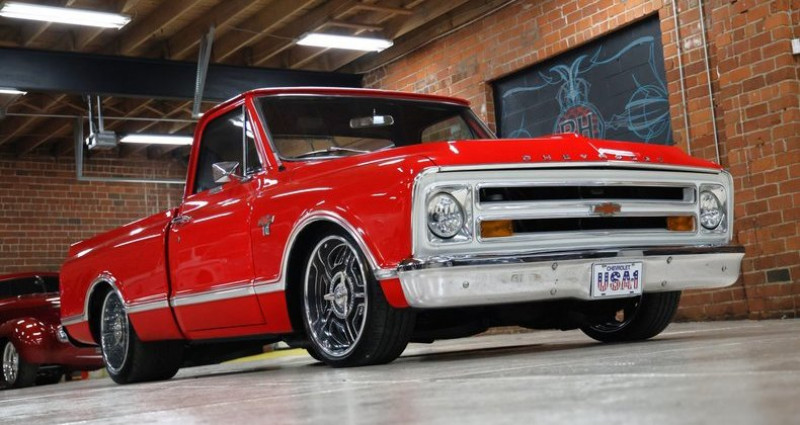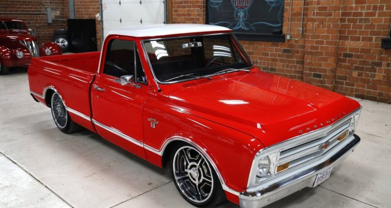 Informations fournies par le vendeur : 1967 Chevrolet C-10 Short bed, Torch Red with White roof and front grill, LS1 engine, Texas Speed cam, built 4L60e transmission, powered brakes, Wilwood master cylinder and booster, 4/8-inch drop, Raceline Scoundrel wheels (20x8.5 front, 20x15 rear), narrowed 12-bolt rear end with Positraction and 3.73 gears, big tubs in bed, custom real wood bed, Dakota Digital gauges, CPP tilt column, vintage heat and AC, Snowden seat, door panels, and headliner, lowered suspension for improved look and handling, 5626 Gravois Ave, St. Louis, MO, 63116, (515)-REVHEADS, www.revheads.com for more information and inquiries.. Provenance : , USA. Disponibilité : environ 7 semaines, clés en main. 72 500 € tout compris (import, taxes, procédure d'immatriculation). Nous représentons les acheteurs sur le marché nord-américain et sécurisons chaque étape du processus, de la sélection jusqu’à la mise en circulation en Europe. Basés en France, nous faisons bénéficier nos clients d’un réseau solide de vendeurs professionnels, de collectionneurs privés, d’experts indépendants et de partenaires logistiques présents sur l’ensemble des États-Unis et du Canada. Annonce publiée le 21/11/2025