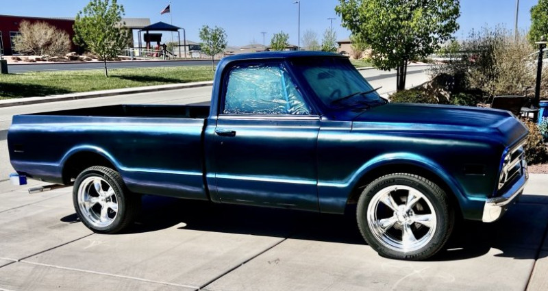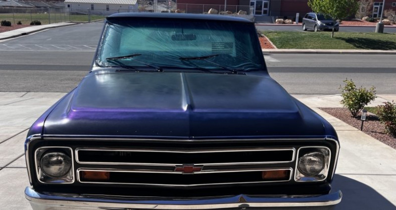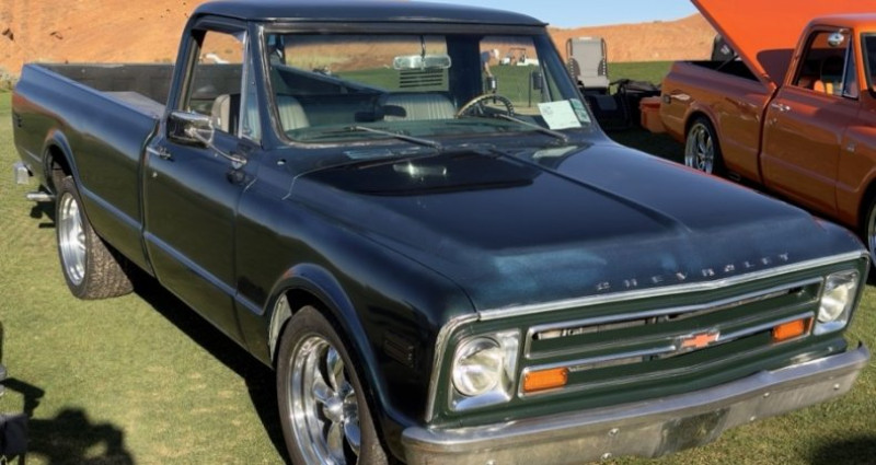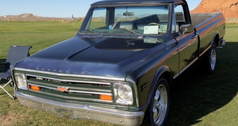 1968 Chevy C10, 350 engine, manual 4 speed transmission, new battery, new shocks, rear mount gas tank, front disc brakes, new dual exhaust, new interior with Pioneer Bluetooth music deck and speakers, new Michelin high performance tires (19 front, 20 rear), new American Racing Wheels, new custom paint job, all LED lighting.. Provenance : Utah. Disponibilité : environ 7 semaines, clés en main. 29 500 € tout compris (importation, taxes, procédure d'immatriculation). Annonce publiée le 24/11/2025