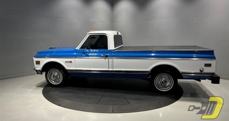 1972 Chevrolet C10 Cheyenne, Stock #: 2031, Blue (Exterior & Interior), Pickup, Automatic, 350ci, 87, 838 miles, Factory equipment includes woodgrain trim, chrome front bumper, cargo lamp, special badging, cab lights, tinted windows, wooden bed floor, tonneau cover, modified rear bumper with trailer hitch, oversized fuel tank, 15 wheels with 235/75 tires from 2015, Edelbrock 4-barrel carburetor, HEI ignition, matching air cleaner and valve covers, TH350 automatic transmission with a fluid and filter change in 2024, power steering and power brakes (converted to DOT-5 brake fluid), new brake hoses, rear shoes and wheel cylinders, R134a air conditioning (new compressor in 2024), aftermarket steering wheel, Pioneer stereo, original manual and warranty book with Protect-O-Plate included.. Provenance : Wisconsin. Disponibilité : environ 7 semaines, clés en main. 43 500 € tout compris (importation, taxes, procédure d'immatriculation). Annonce publiée le 26/11/2025