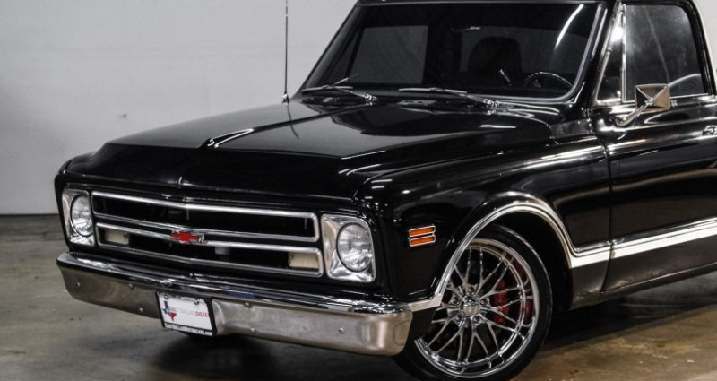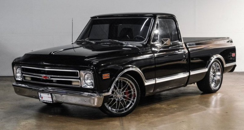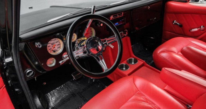 Black Chevrolet C10, 41543 Miles, Short bed model, Black exterior, Red interior, Automatic transmission, RWD, 8 Mileage, 383 CI Stroker V8 engine, Custom Red leather interior with Black inserts, Big back window, Rear coilovers suspension, Aluminum heads, Vintage Air, Modified suspension, 4-wheel disc brakes, Custom Ridler wheels and tires, Budnik steering wheel, Custom gauges, Tilt steering column, Lo Pro tonneau cover, Spray in bed liner, Staggered 20 inch custom aluminum wheels, Lumbar Support, Climate Control, Air Conditioning, FM Radio, Cruise Control, Black Exterior, Red Interior. Provenance : Texas. Disponibilité : environ 7 semaines, clés en main. 72 500 € tout compris (importation, taxes, procédure d'immatriculation). Annonce publiée le 29/11/2025