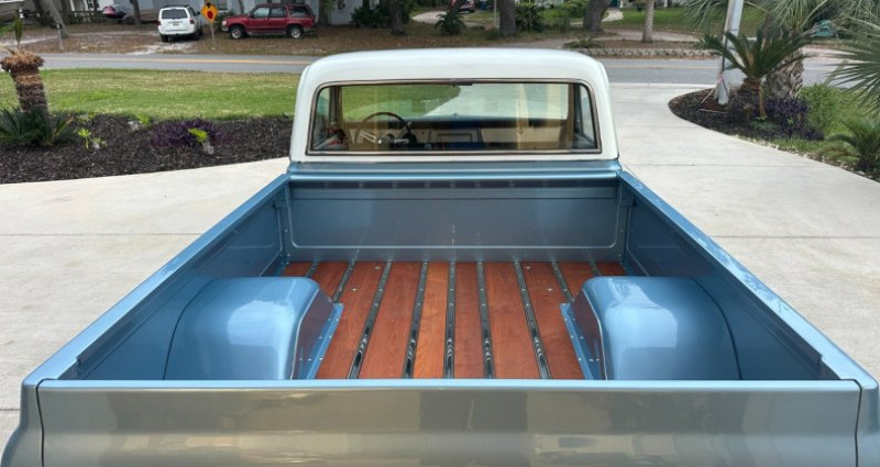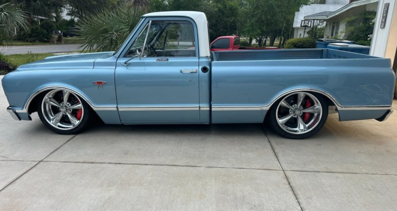 - Année : 1967 - Type de véhicule : Pick-up C-10 à fenêtre arrière grande - Moteur : Ls7 454 construit en intégralité, provenant d'une 70 SS Chevelle avec transmission 400 turbo avec 3500 stall - Suspension : Porterbuilt street-rod - Differential : Courteur Currie en billet avec freins Willwood, 16 avant et 14 arrière - Roues : Billett specialty mag, 20/8.5 avant et 20/14 arrière - Boîte à outils : Personnalisée en teak - Intérieur : Peinture argentée avec banquette en cuir noir - État : 95% achevé après restauration complète du cadre - Numéro de téléphone du vendeur : 714-244-6562. Provenance : Alabama. Disponibilité : environ 7 semaines, clés en main. 58 500 € tout compris (importation, taxes, procédure d'immatriculation). Annonce publiée le 03/12/2025