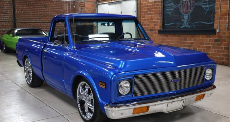 - Marque : Chevrolet - Modèle : C-10 Short Bed - Année : 1972 - Couleur : Hyper Blue Metallic - Moteur : BluePrint 383 Stroker - Transmission : 700R4 overdrive - Arrière : 12-bolt avec 3.73 gears et Posi Traction - Freins : Slotted/drillés sur toutes les quatre roues - Climatisation : Vintage Air Heat & AC - Bois de la benne : Neuf. Provenance : , USA. Disponibilité : environ 7 semaines, clés en main. 72 500 € tout compris (import, taxes, procédure d'immatriculation). Annonce publiée le 07/12/2025