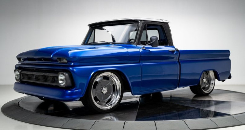 - Marque : Chevrolet - Modèle : C10 - Année : 1964 - Type de carrosserie : Pick-up - Moteur : 5.3L LS V8 - Transmission : 6 vitesses automatique - Couleur extérieure : Bleu métallisé - Couleur intérieure : Noir - Suspension : RideTech - Pneus : 22 pouces American Racing Salt Flat - Kilométrage : 311 miles (non converti). Provenance : North Carolina. Disponibilité : environ 7 semaines, clés en main. 122 500 € tout compris (importation, taxes, procédure d'immatriculation). Annonce publiée le 19/12/2025