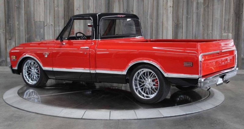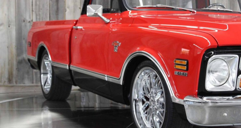 - Couleur extérieure : Rouge - Couleur intérieure : Noir - Type de carrosserie : Restomod - Transmission : 3 vitesses automatique - Moteur : 8 cylindres - Kilométrage : 290 - Moteur : 454 CI V-8 - Distribution : HEI - Carburateur : Holley 750 CFM - Radiateur : Aluminium avec deux ventilateurs électriques - Freins : 4 roues à disques - Équipement intérieur : Système audio AM/FM, climatisation et chauffage, sièges et panneaux intérieurs en cuir alligator - Équipement extérieur : Peinture de la carrosserie, de la cabine et des bas de caisse massée à un fini de qualité d'exposition, grille, pare-chocs et accessoires en chrome neufs, freins et échappements en chrome, tableau de bord et panneaux de portes neufs, fenêtres légèrement teintées, coffre peint en rouge avec connecteurs et accessoires en noir peints, suspension abaissée de 4/6, rapport d'arbre de transmission arrière 3.08, roulements et joints de l'arbre de transmission arrière neufs, amortisseurs neufs, freins à disques à quatre roues - État : Restauration complète sur rotisserie - Mise en vente : eBay Store 12345678910. Provenance : Iowa. Disponibilité : environ 7 semaines, clés en main. 90 000 € tout compris (importation, taxes, procédure d'immatriculation). Annonce publiée le 03/01/2026