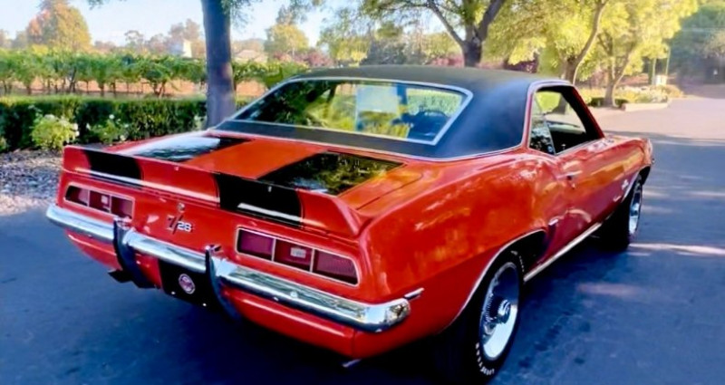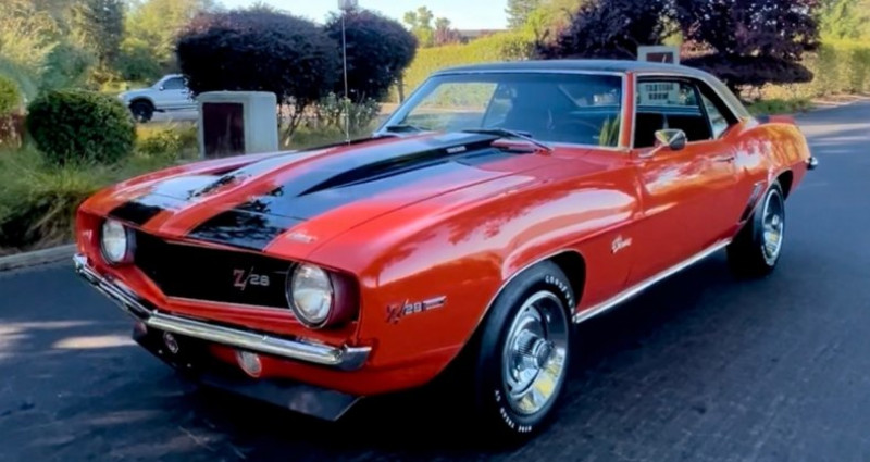 Le modèle en question est un Chevrolet Camaro Z/28 de 1969, portant l'immatriculation X-77, muni d'un moteur V8 Turbo-Fire de 302 ci (5, 0 L). La transmission est une boîte manuelle à 4 vitesses Muncie Close-Ratio M21. La transmission et le différentiel arrière portent les codes respectifs P8P12 et BV 0228G1 E. La carrosserie présente un excellent état de conservation et est peinte en orange hugger, avec un toit en vinyle noir. Le tableau de bord est en vinyle noir avec sièges de cabine, et la plupart des composants du moteur, tels que l'alternateur, le distributeur et le cul-de-vue de l'air, sont originaux ou ont été remplacés par des pièces appropriées. Cet exemplaire a probablement été utilisé pour des courses de drag racing dans la région de Tipton, en Pennsylvanie, à ses débuts. Plus tard, il a subi une restauration complète en 1992-1993 par Vintage Motorcars de Derby, Connecticut. Avec une peinture d'une vingtaine d'années, il conserve son aspect original et est considéré comme un véritable modèle légendaire, fonctionnel et agréable à conduire.. Ce descriptif est basé sur les éléments communiqués par le propriétaire avec un traitement assisté. Merci pour votre indulgence en cas de formulation perfectible. Provenance : California. Disponibilité : 7 semaines, clés en main. 113 500 € tout compris (importation, taxes, procédure d'immatriculation). Annonce publiée le 28/09/2025