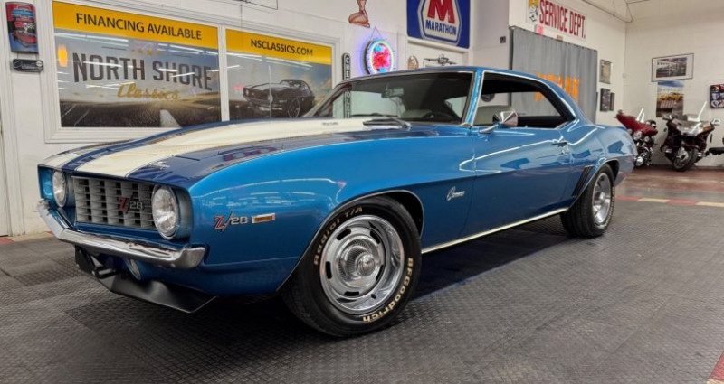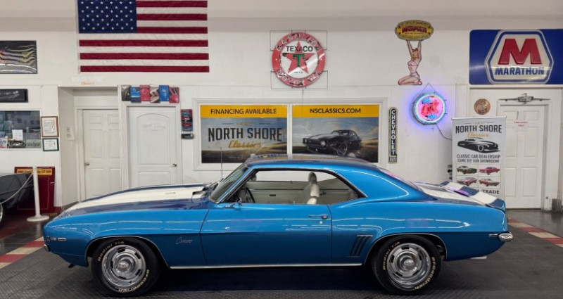 Le Chevrolet Camaro LeMans bleu de 1969 avec 39 094 milles est disponible pour la vente. L'extérieur est de couleur LeMans Blue tandis que l'intérieur est blanc. La transmission est une boite manuelle à 5 vitesses. L'ensemble moteur est un 302 de type DZ et est daté du 22 janvier 1969. La voiture a été produite durant la 4ème semaine de février. Le groupe d'assemblage est X33. La boite de vitesses Tremec TKX 5 vitesses est numériquement identique à la boite M-21 de vente incluse dans la vente. La suspension arrière est une boîte de transmission 12 bolts POSI avec un rapport de 3.73. La voiture est équipée de freins et de direction assistés. Elle possède également une échappement chambrée de style original, une ignition Pertronix, une radio Retrosound et un système de suspension Ridetech Street Grip avec amortisseurs ajustables. La voiture a été restaurée de manière de qualité d'exposition, ne nécessitant aucune intervention supplémentaire. Les indicateurs fonctionnent correctement, y compris le chronomètre. La voiture a été détenue par le propriétaire actuel durant plus de 25 ans.. Ce descriptif est basé sur les éléments communiqués par le propriétaire avec un traitement assisté. Merci pour votre indulgence en cas de formulation perfectible. Provenance : Illinois. Disponibilité : 7 semaines, clés en main. 113 000 € tout compris (importation, taxes, procédure d'immatriculation). Annonce publiée le 02/10/2025