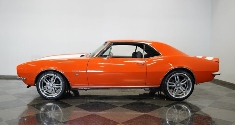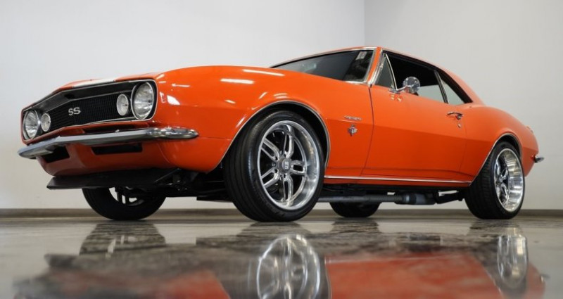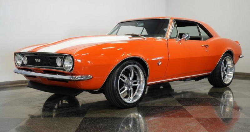 Cette 1967 Chevrolet Camaro SS Tribute est un émouvant hommage à une des voitures musculées les plus prisées d'Amérique. Le véhicule, équipé d'un moteur 383 V8 et d'une boîte automatique 4 vitesses 700R4, a bénéficié d'un redessinage extérieur en orange, d'une nouvelle peinture, d'une upholstère en cuir noir, d'un amplificateur audio AM/FM/AUX équipé de connectivité Bluetooth, de freins et de direction électriques, de sortie d'échappement tubulaire, de suspensions tubulaires en acier et de freins à disques en avant. Le véhicule a également été équipé d'un manifold à allumage électronique Edelbrock et d'une injection d'essence électronique Fitech. Dans son état général, il présente des panneaux de caisse redessinés, une coque de capota striée, des sièges baquets en cuir noir, un tableau de bord original et un moteur et une transmission en excellents états. Le véhicule est doté d'un titre de propriété neuf d'AZ et se déplace à une vitesse de 46 379 miles.. Ce descriptif est basé sur les éléments communiqués par le propriétaire avec un traitement assisté. Merci pour votre indulgence en cas de formulation perfectible. Provenance : Arizona. Disponibilité : 7 semaines, clés en main. 53 500 € tout compris (importation, taxes, procédure d'immatriculation). Annonce publiée le 03/10/2025