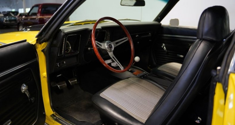Ce véhicule en vente est un Chevrolet Camaro Z28 Tribute, modèle vintage américain de musculation, du style classique, d'année et de couleur Daytona Yellow. L'intérieur est en tissu houndstooth. Il est équipé d'un moteur 350 V8 et d'une transmission manuelle à 4 vitesses. Les freins sont à disque avant. La suspension avant est composée de ressorts à hérissure, amortisseurs et barres anti-roulis, tandis que la suspension arrière est équipée de ressorts à lames et d'amortisseurs. Le moteur est alimenté par un intake Cross Ram Winters et deux carburateurs à quatre corps Holley. Les mufflers de double échappement Flowmaster sont équipés et les roues sont de 15 pouces avec des caps chromés et des anneaux de beauté. Les pneus sont F70-15 Goodyear Polyglas biais pneumatiques. Le véhicule dispose d'un pare-brise à soufflet et d'un tableau de bord à pile centrale, et il est également équipé d'un système audio AM/FM/AUX. Les panneaux de roues sont blancs et sont ornés de bandes noires. Le véhicule dispose également de badges Z/28.. Ce descriptif est basé sur les éléments communiqués par le propriétaire avec un traitement assisté. Merci pour votre indulgence en cas de formulation perfectible. Provenance : North Carolina. Disponibilité : 7 semaines, clés en main. 90 500 € tout compris (importation, taxes, procédure d'immatriculation). Annonce publiée le 16/10/2025