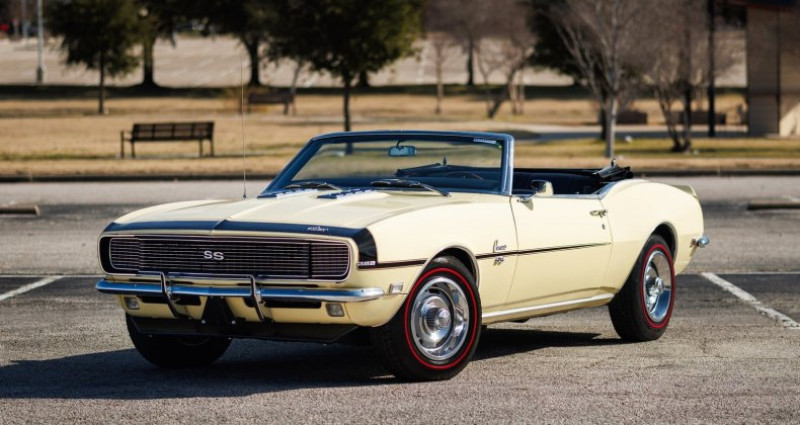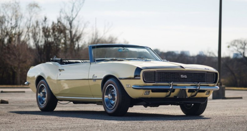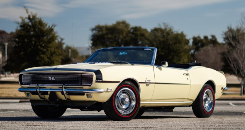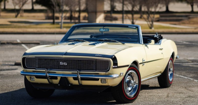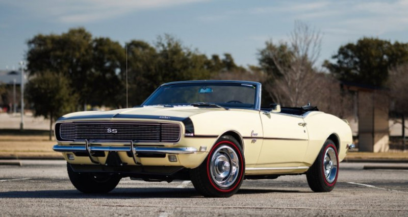 Ce texte décrit un Chevrolet Camaro RS/SS 396 Convertible de 1968 restauré entièrement et prêt à être présenté et conduit. Ce modèle possède un moteur V8 de 396 ci répondant au numéro de moulage #3935440, développant 350 ch, associé à une boîte de vitesses Muncie M21 à 4 rapports (case numéro #3925660). Le véhicule a également des freins à disque à l'avant assistés, un volant à pompe à air, des spoilers avant et arrière, des éclairage caché, des pare-chocs en bois et une radio AM/FM. Le couleur extérieure du véhicule est la Y2 Butternut Yellow, avec un intérieur noir. Le kilométrage indique est de 1 111 miles.. Ce descriptif est basé sur les éléments communiqués par le propriétaire avec un traitement assisté. Merci pour votre indulgence en cas de formulation perfectible. Provenance : Texas. Disponibilité : 7 semaines, clés en main. 100 500 € tout compris (importation, taxes, procédure d'immatriculation). Annonce publiée le 31/10/2025