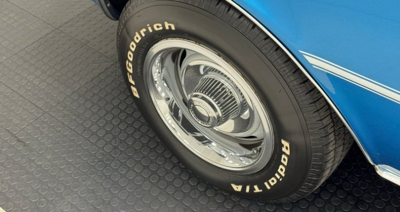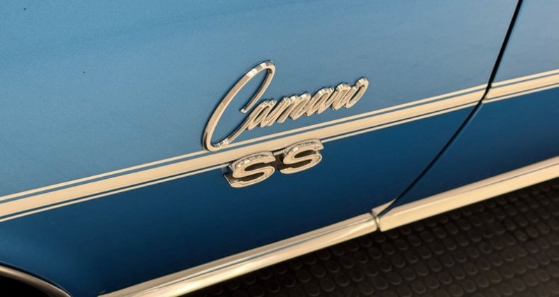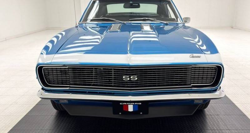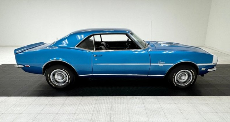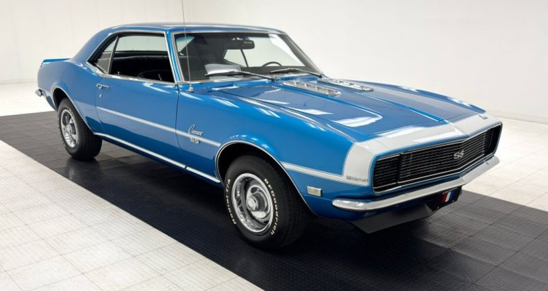 1968 Chevrolet Camaro RS/SS396 Hardtop, LeMans Blue, 2-Door Sport Coupe, 396ci V8, TH400 3-speed automatic, 2.56 gears with Positraction, 14-inch Chevrolet Rally wheels, white letters out, double red tail lights, power disc brakes, power drum rear, coil springs front, leaf springs rear, satin black under-body panels, FlowMaster muffler, black houndstooth cloth and black vinyl seats, modernized dual gauges, AM radio, updated quad gauge setup, clean engine bay with .520 lift cam, Weiand intake, Holley Sniper EFI kit, no rust, no errant fluids, no road dust, A/C not working, located in Morgantown, Pennsylvania.. Provenance : , USA. Disponibilité : environ 7 semaines, clés en main. 77 000 € tout compris (import, taxes, procédure d'immatriculation). Annonce publiée le 26/11/2025